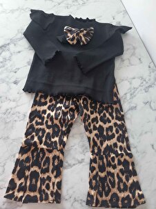 Kız Bebek Kız Çocuk İspanyol Paça Bandanalı Leopar Takım Kız Bebek Kız Çocuk İspanyol Paça Bandanalı Leopar Takım aryaleopartakım 9-12