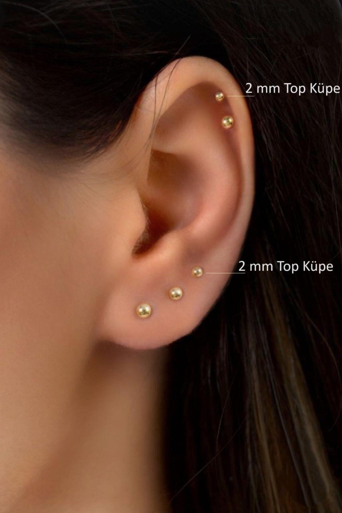 Gold Top Küpe 2 mm Gold Top Küpe 2 mm CFHMQY23 تک سایز