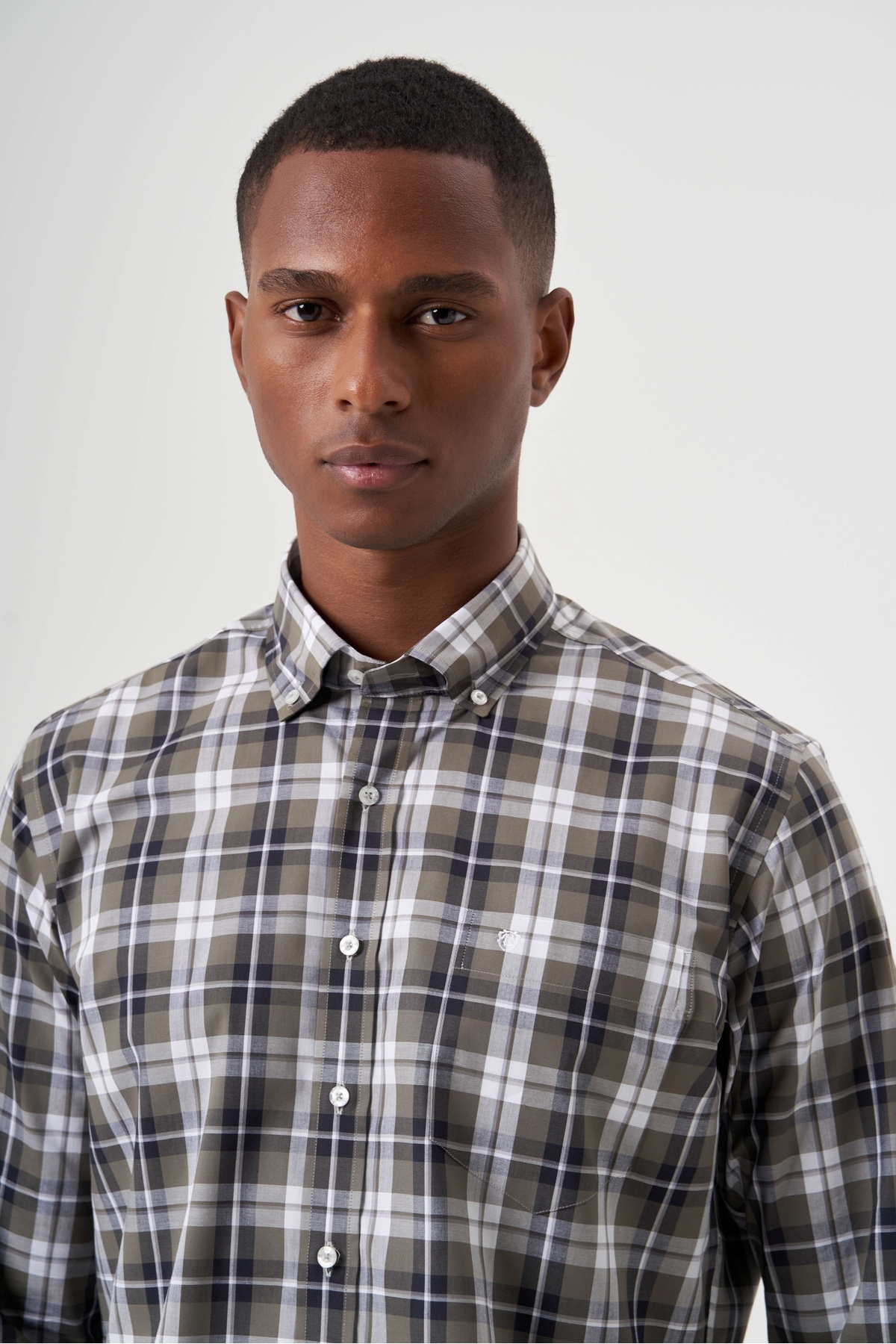 Regular Fit Paşa Yaka Haki Ekoseli Erkek Gömlek Regular Fit Paşa Yaka Haki Ekoseli Erkek Gömlek GM23K232011_D49 2XL