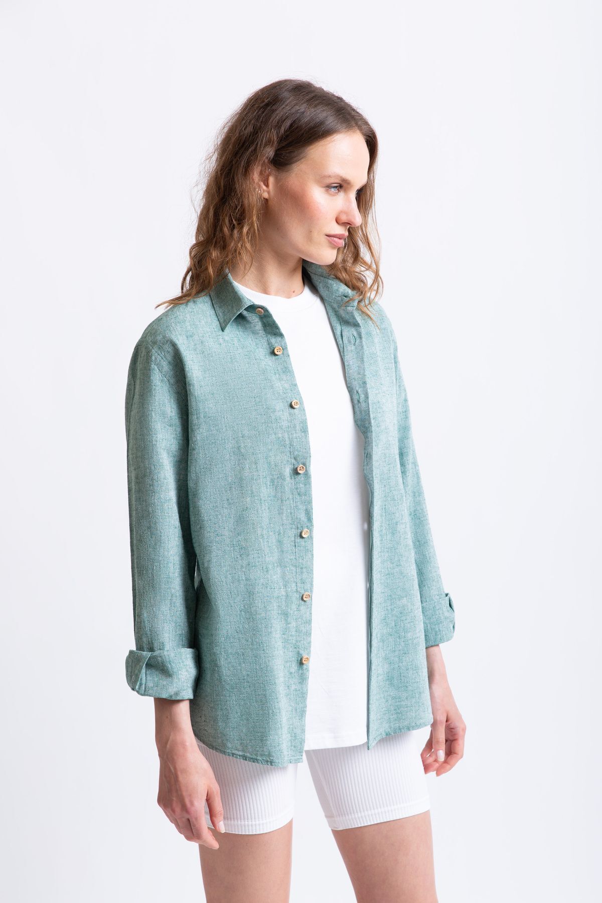 Kadın Doğal Yeşil Keten Gömlek Kadın Doğal Yeşil Keten Gömlek SH9 XL