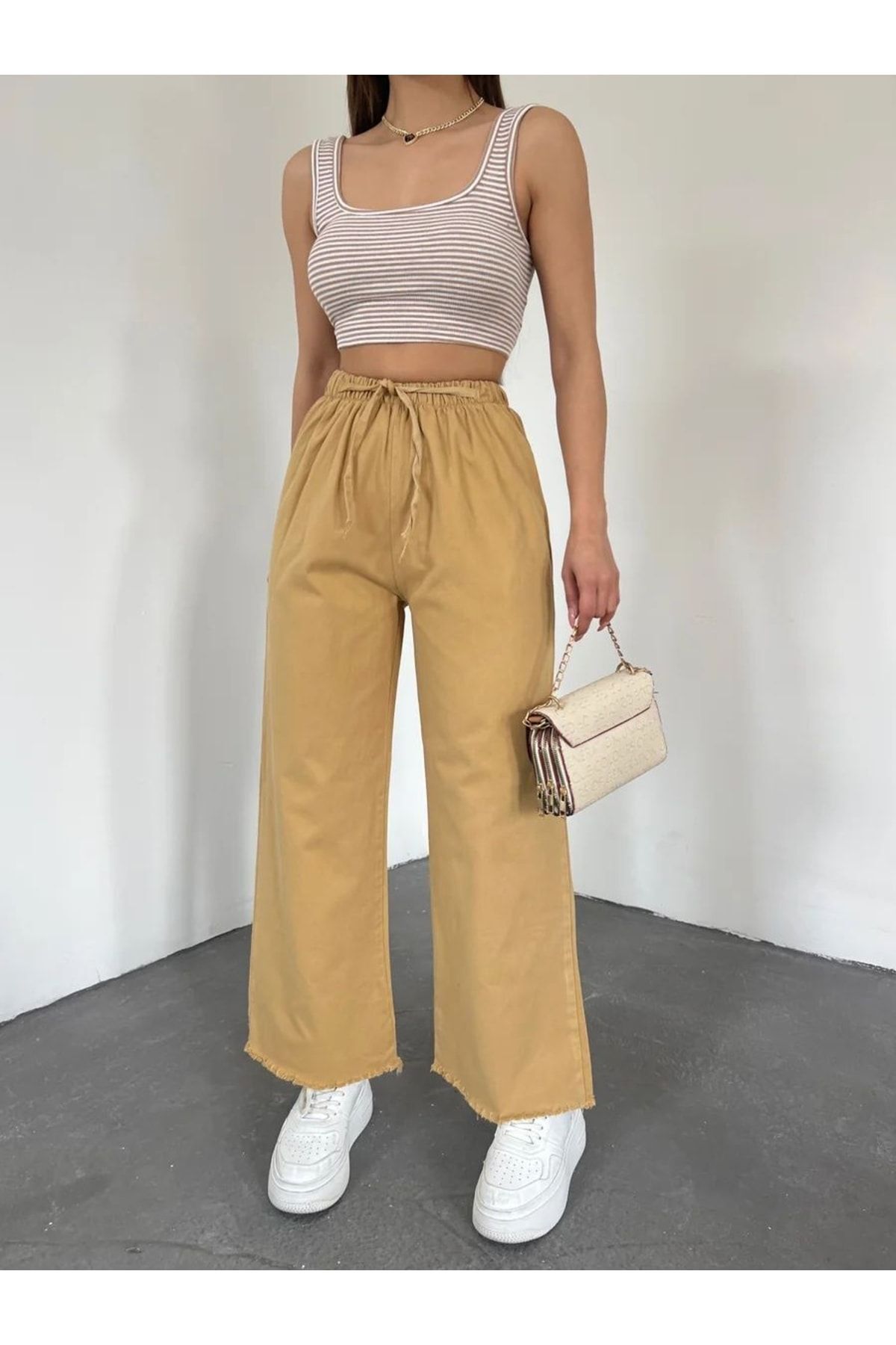 Yüksel Bel Paçası Püsküllü Palazzo Pantolon Yüksel Bel Paçası Püsküllü Palazzo Pantolon DF1101 XL