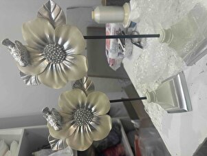 Dekoratif Polyester Ikili Çiçek Aksesuar Krem-gümüş Dekoratif Polyester Ikili Çiçek Aksesuar Krem-gümüş PM0065278 تک سایز