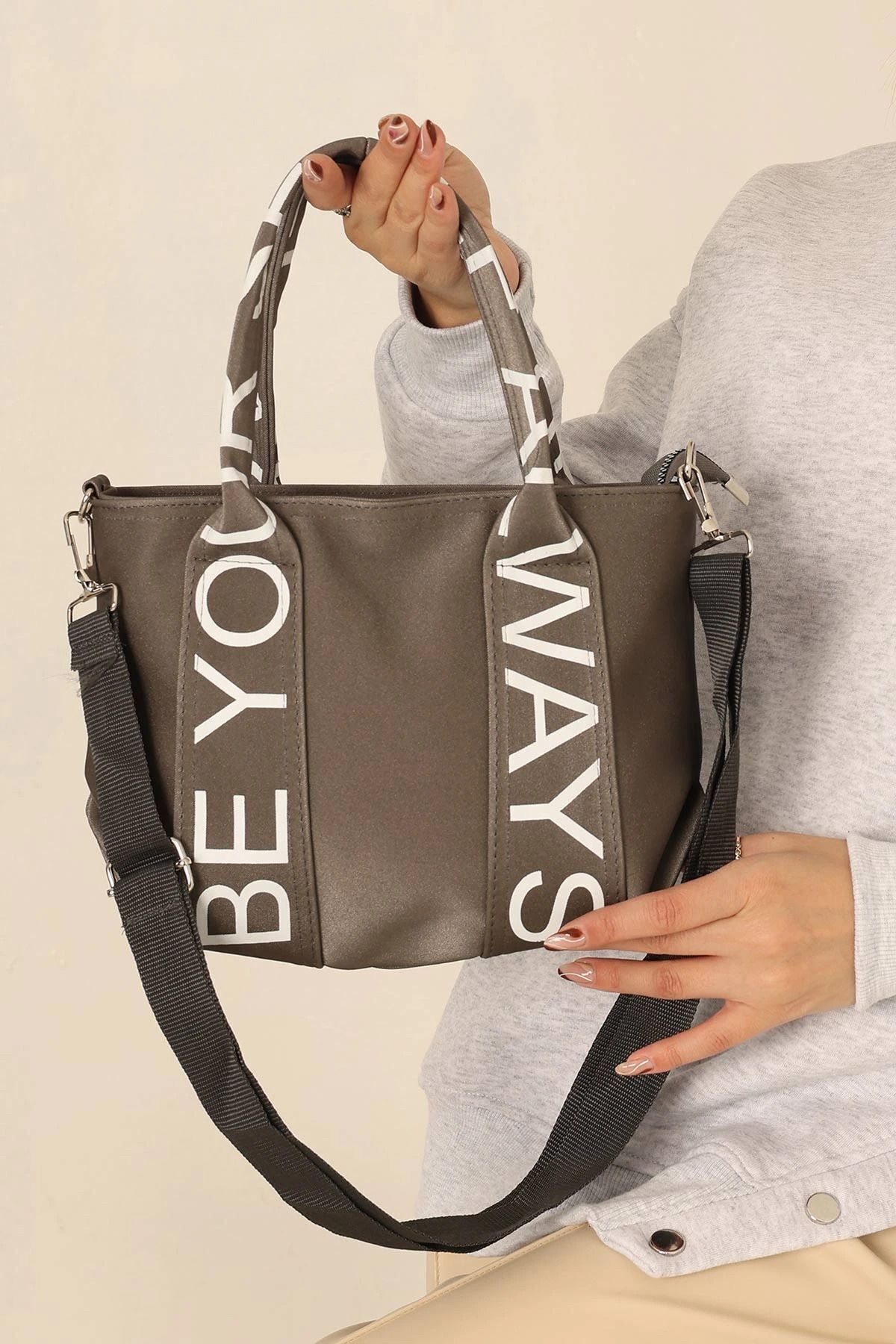 Kadın Gri Kanvas Kumaş Tote Bag El Ve Omuz Çantası Kadın Gri Kanvas Kumaş Tote Bag El Ve Omuz Çantası Ty009876 تک سایز
