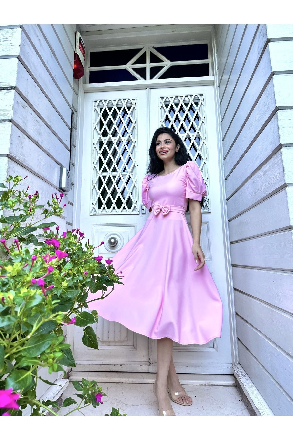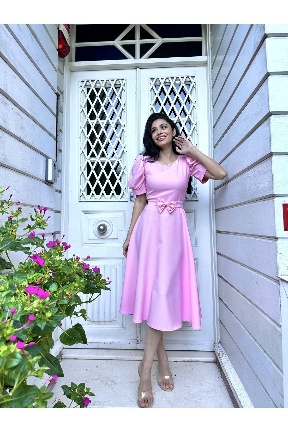 Pudra Karpuz Kol Kloş Midi Boy Krep Elbise Pudra Karpuz Kol Kloş Midi Boy Krep Elbise KCGM11824 3XL