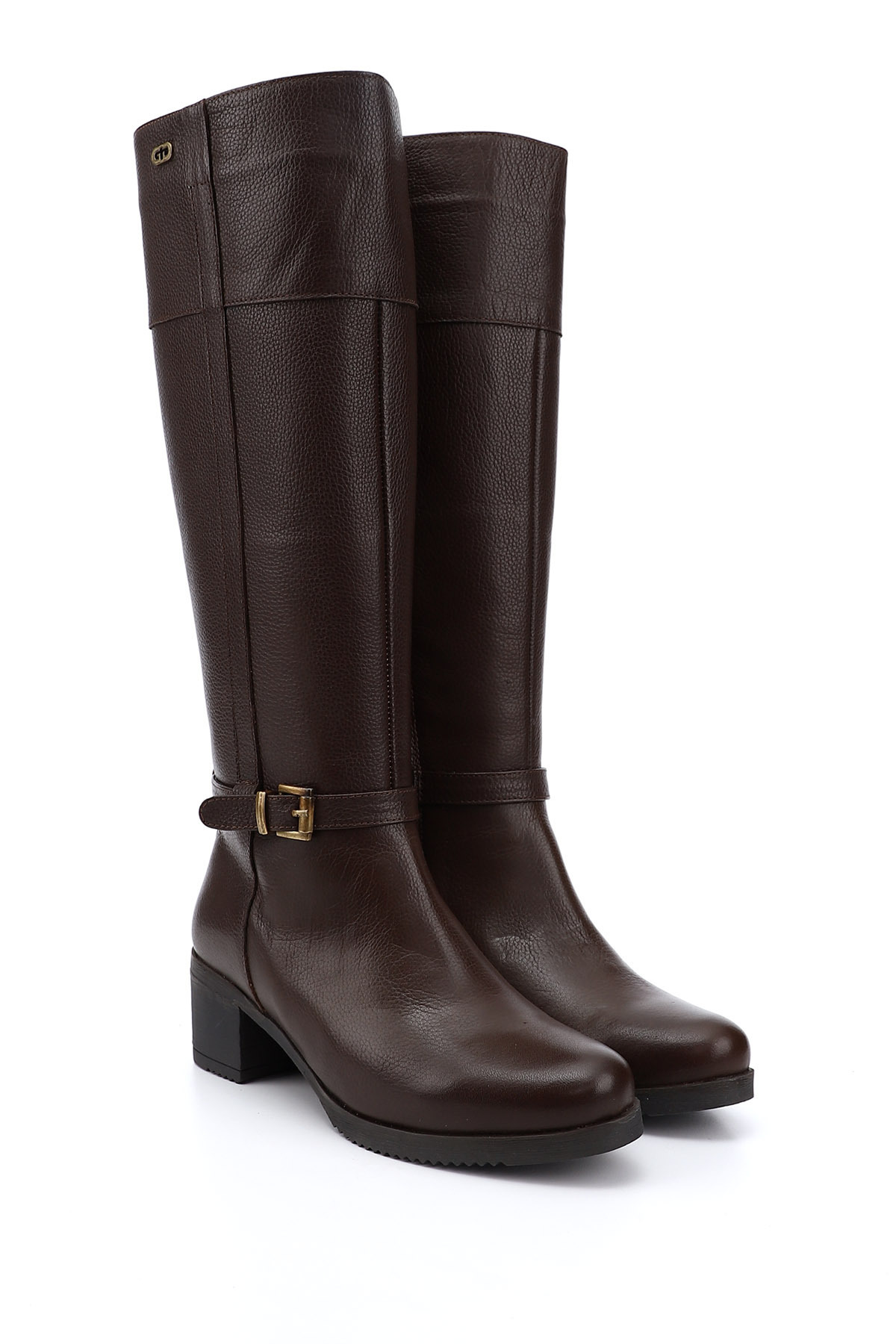 Kadın / Kız Koyu Kahve Floter Fermuarlı Kalın Topuklu Hakiki Deri Çizme Kadın / Kız Koyu Kahve Floter Fermuarlı Kalın Topuklu Hakiki Deri Çizme GKZC13444564 42