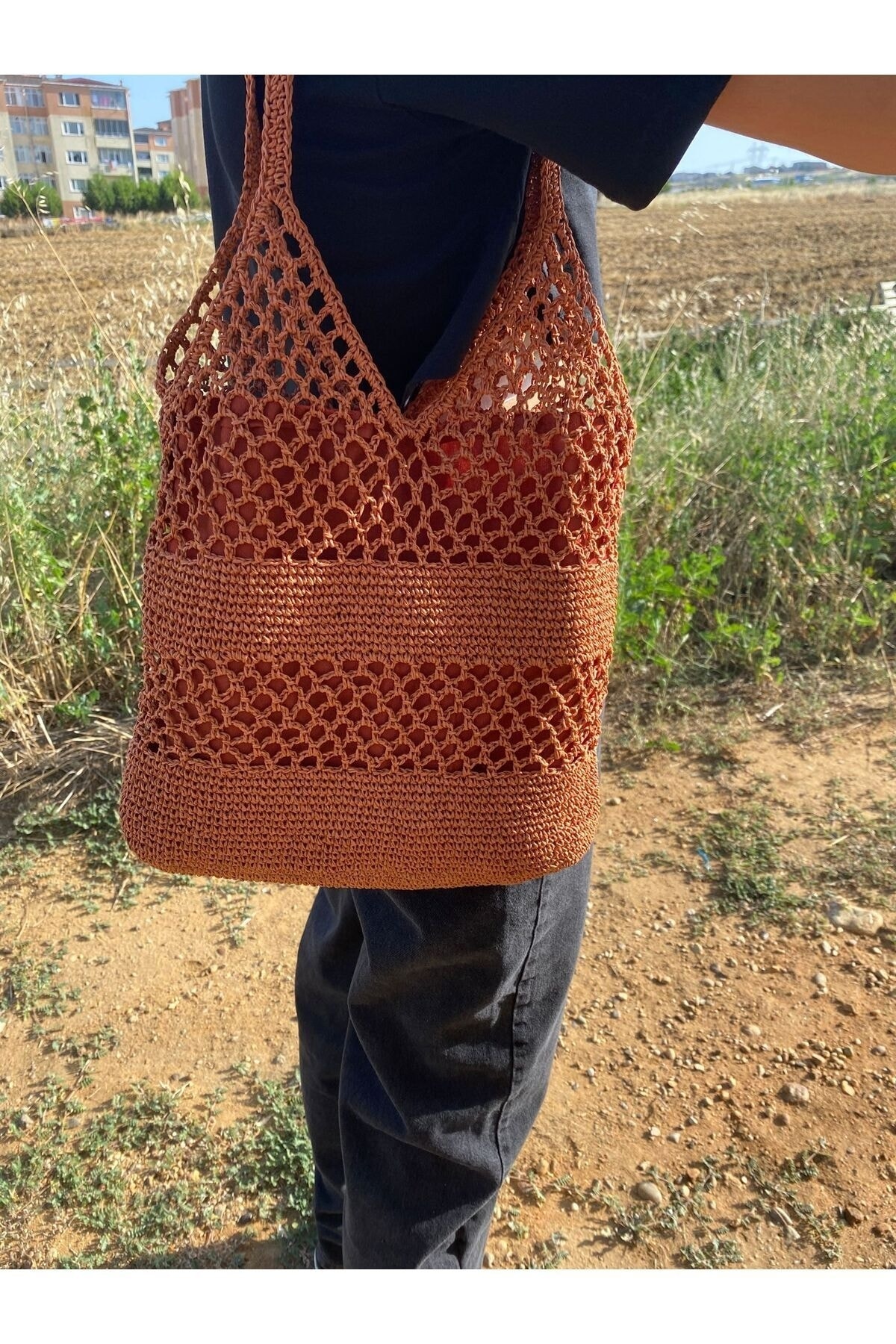 Kadın Hasır Renk El Yapımı Kağıt Ip Örgü Günlük Omuz Çantası Kadın Hasır Renk El Yapımı Kağıt Ip Örgü Günlük Omuz Çantası 2547 XL