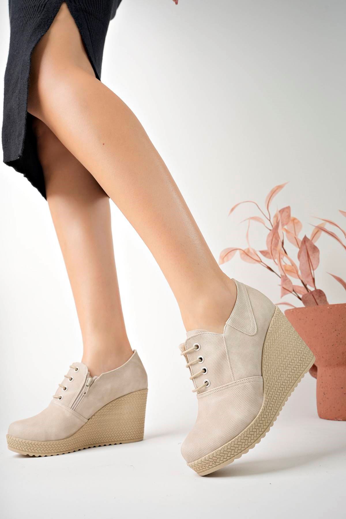 Dolgu Topuk Fermuarlı Krem Kot Kadın Ayakkabı Dolgu Topuk Fermuarlı Krem Kot Kadın Ayakkabı OSFA27 40
