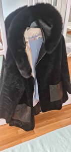 Siyah Aksesuarlı Deri Garnili Çift Taraflı Astragan Kürk Kaban Siyah Aksesuarlı Deri Garnili Çift Taraflı Astragan Kürk Kaban 6074 2XL