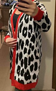 Leopar Desenli Kadın Hırka Kahve/Beyaz/Mercan Leopar Desenli Kadın Hırka Kahve/Beyaz/Mercan AQ20110 XL