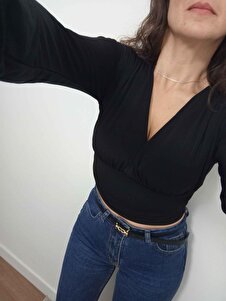 Kadın V Yaka Siyah Uzun Kollu Bluz Kadın V Yaka Siyah Uzun Kollu Bluz BF067 L