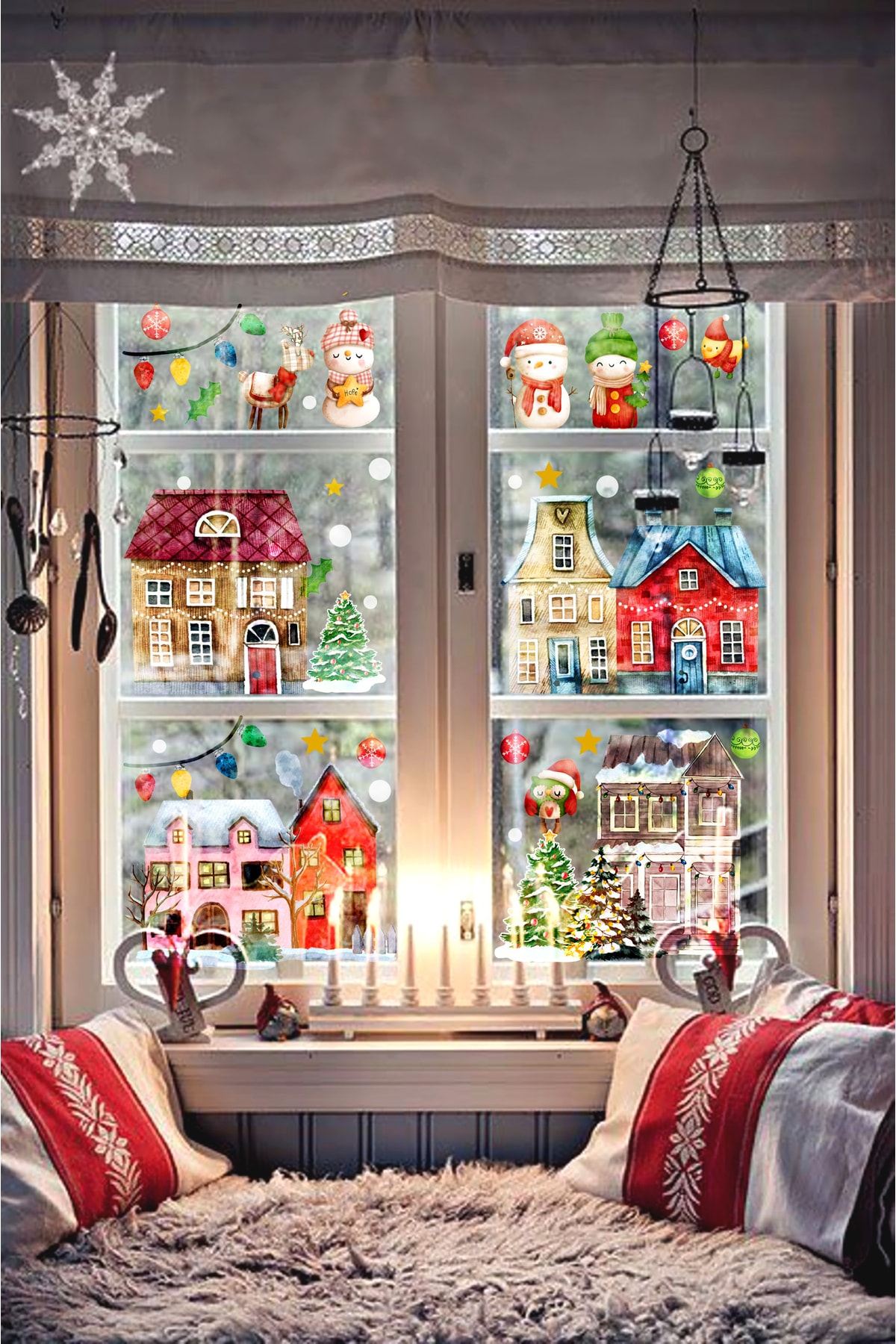 Yılbaşı Temalı Karlı Şehir, Evler Kardan Adam Christmas II Çift Yönlü Şeffaf Cam, Duvar Sticker Seti Yılbaşı Temalı Karlı Şehir, Evler Kardan Adam Christmas II Çift Yönlü Şeffaf Cam, Duvar Sticker Seti ardu000000220 110 x 35