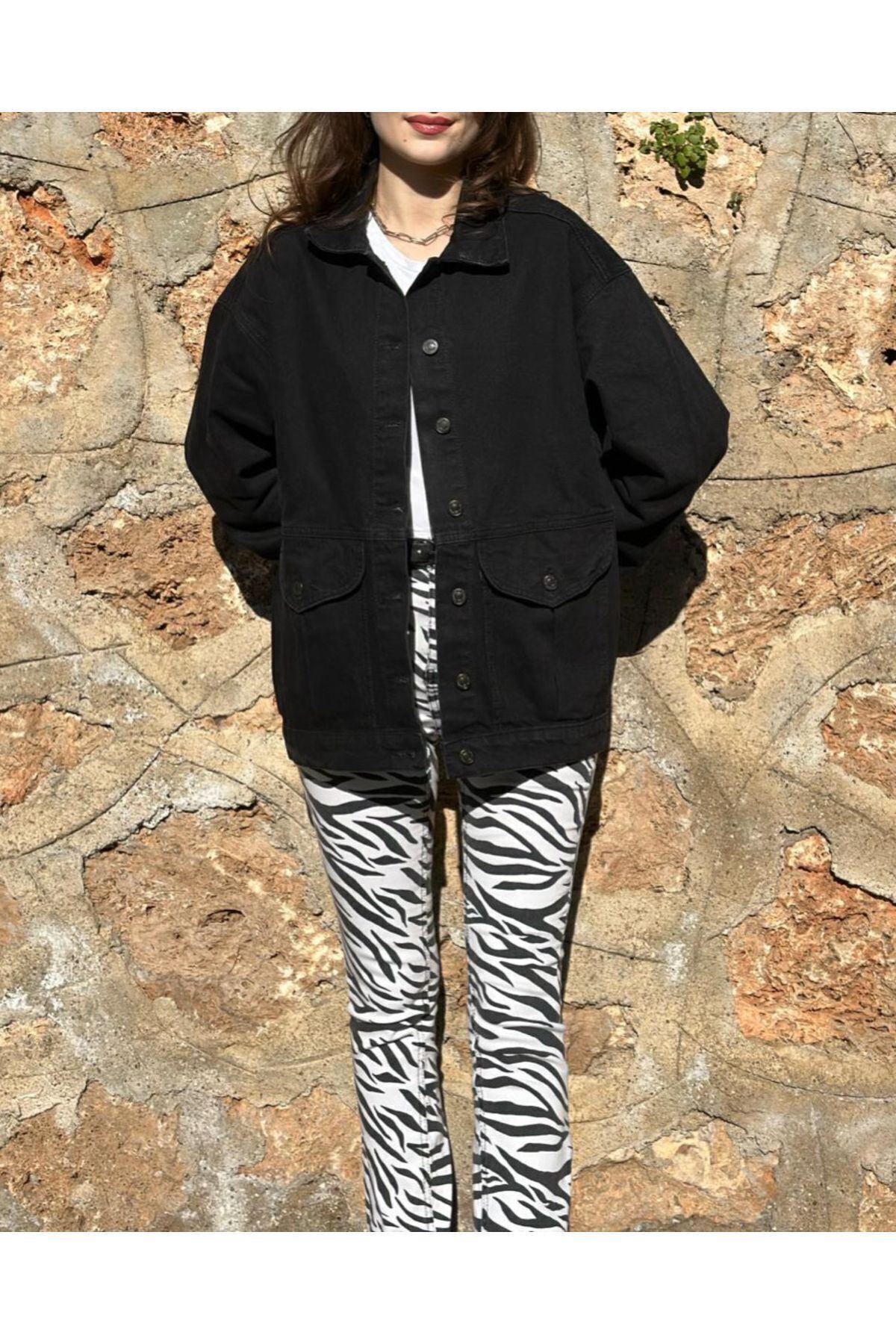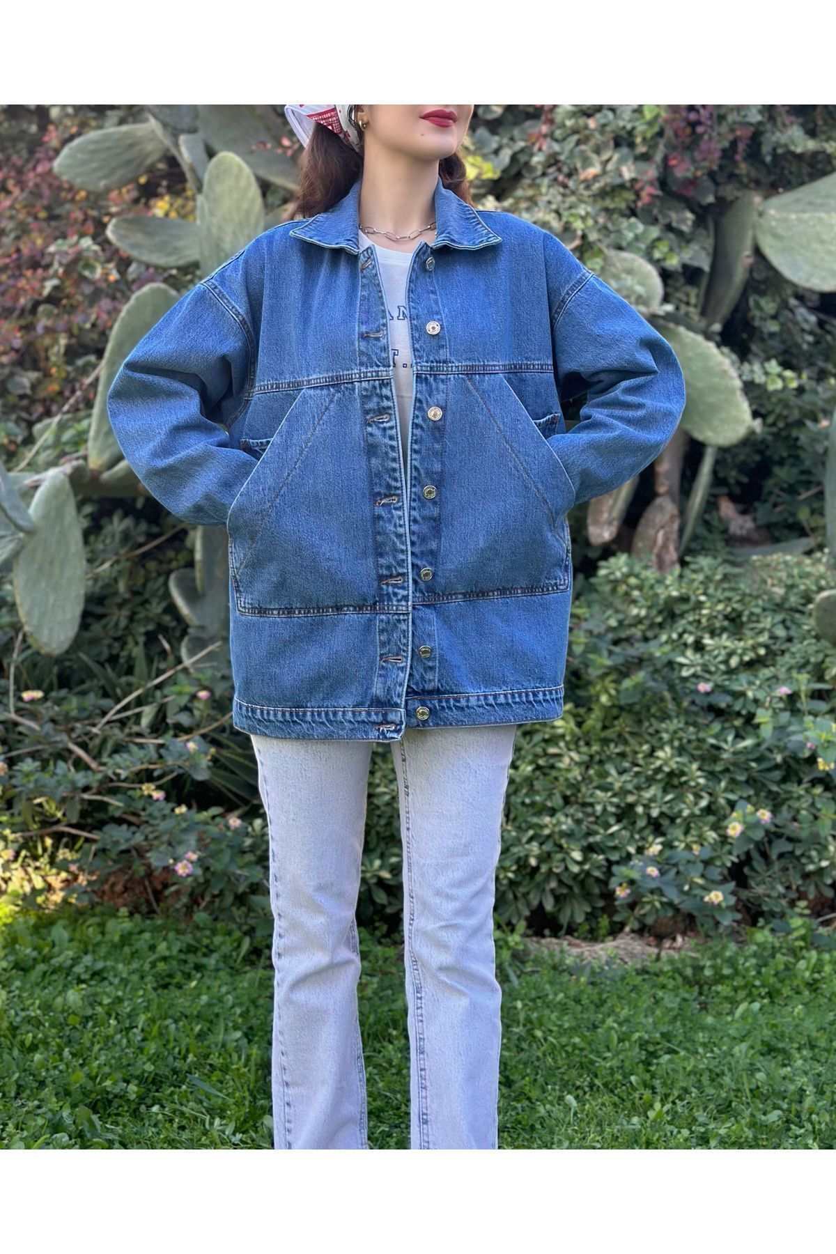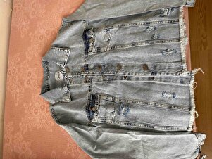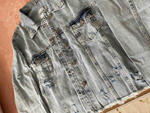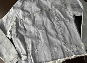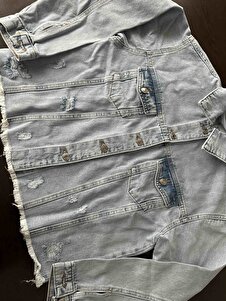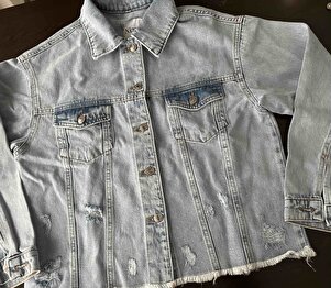 Lazer Yırtıklı Püsküllü Oversize Kadın Mavi Kot Ceket Lazer Yırtıklı Püsküllü Oversize Kadın Mavi Kot Ceket 004 XL