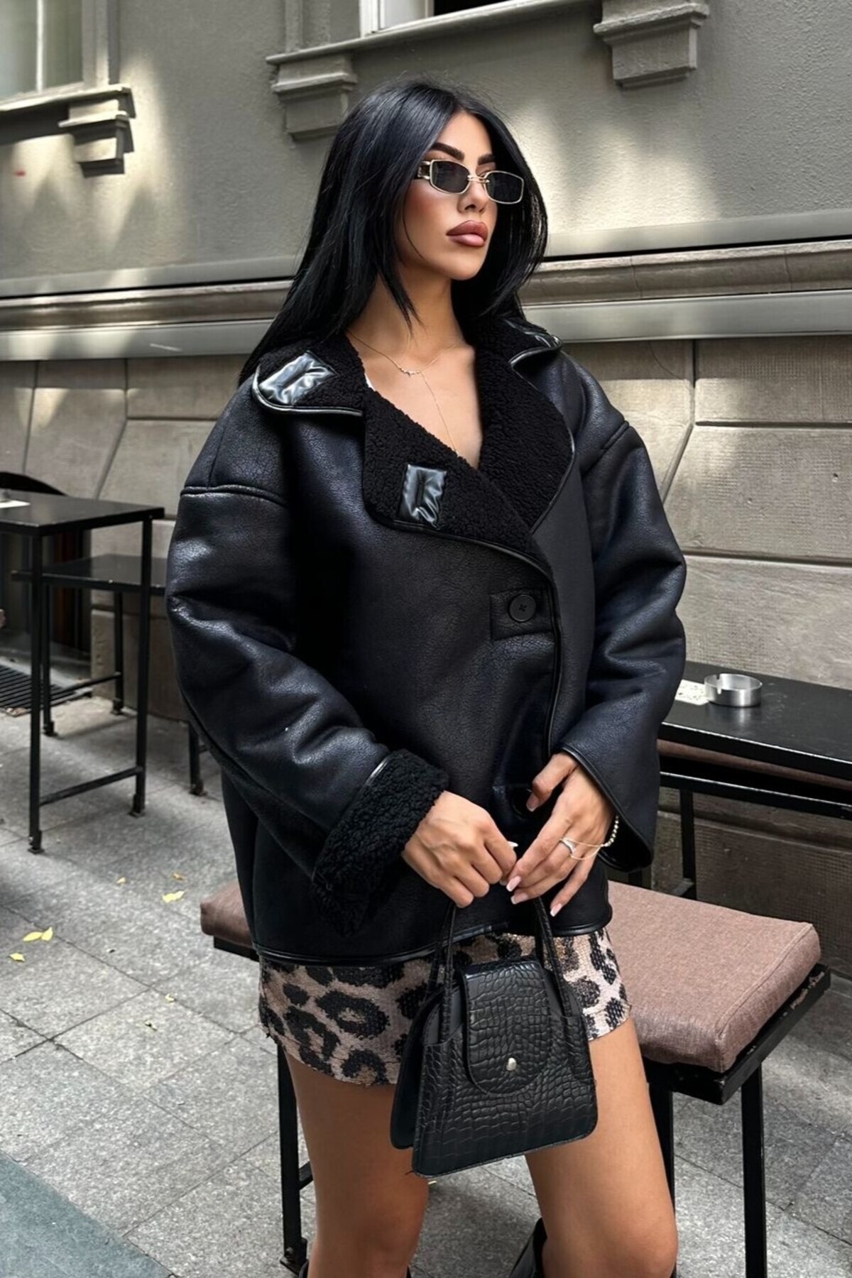 Son Trend Siyah İçi Kürklü Lamine Deri Mont Son Trend Siyah İçi Kürklü Lamine Deri Mont 1701091699-V3 40