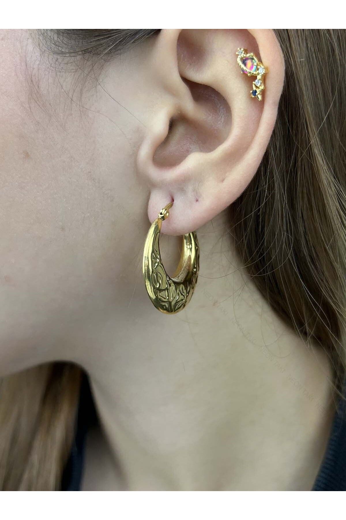 Kadın Yassı Model Çizgili Çelik Halka Küpe Kadın Yassı Model Çizgili Çelik Halka Küpe JMVİPSERİ12 تک سایز
