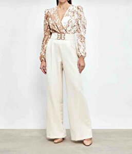 Bel Aksesuarlı Bol Paça Pantolon - Taş Bel Aksesuarlı Bol Paça Pantolon - Taş STN139KPA1254 42