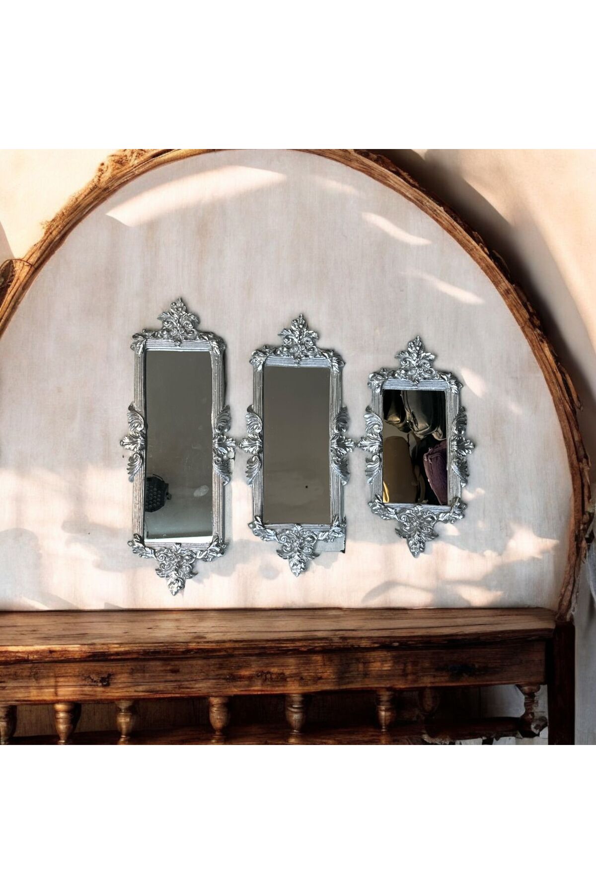 Dekoratif Polyester Üçlü Kare Ayna Takımı Gümüş Eskitme Dekoratif Polyester Üçlü Kare Ayna Takımı Gümüş Eskitme PM0065286 تک سایز