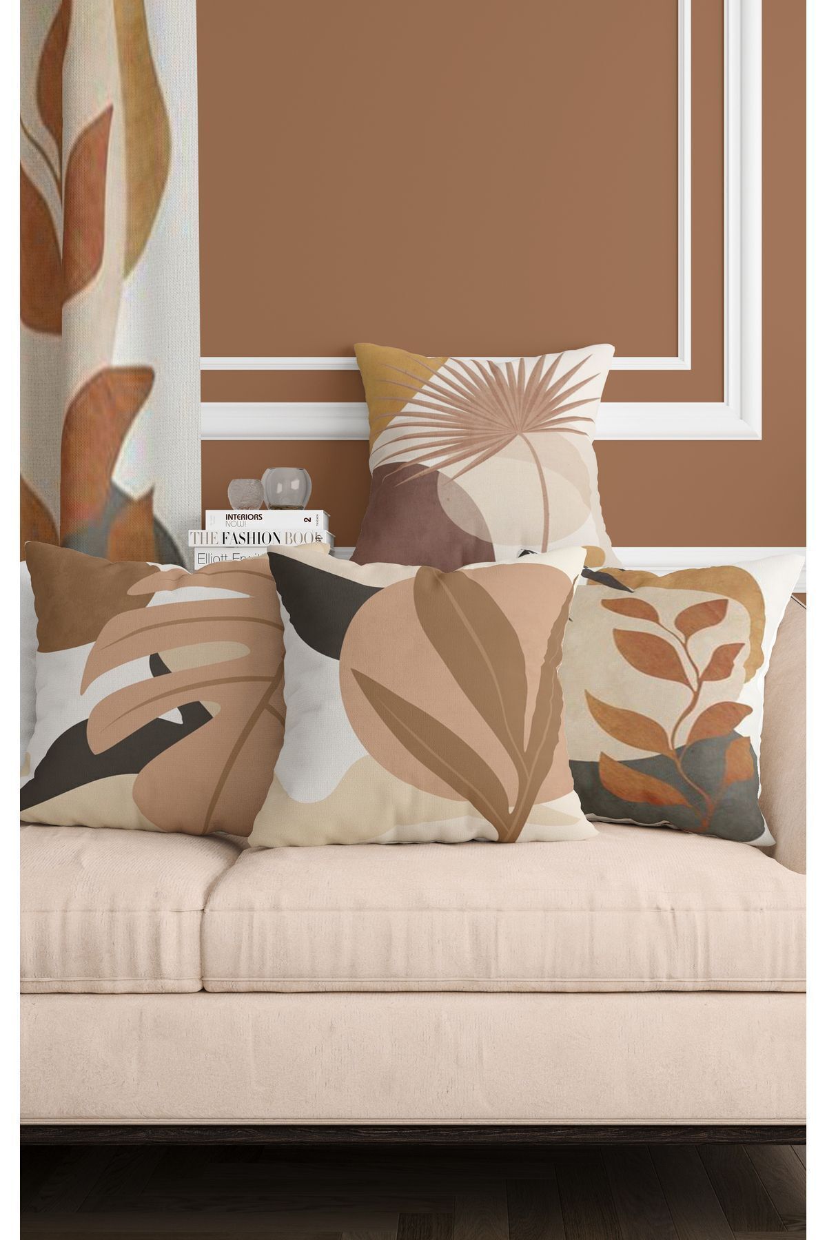 Beyaz Kiremit Renkli Bohem Yaprak Desenli 4'lü Çift Taraflı Djital Baskılı Kırlent Kılıfı Beyaz Kiremit Renkli Bohem Yaprak Desenli 4'lü Çift Taraflı Djital Baskılı Kırlent Kılıfı DWERFER45 43 x 43