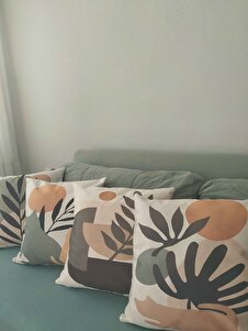 Bohem Stil Yeşil Renkli Yapraklı, Kedi Görselli Dijital Çift Taraflı Baskılı 4'lü Kırlent Kılıfı Bohem Stil Yeşil Renkli Yapraklı, Kedi Görselli Dijital Çift Taraflı Baskılı 4'lü Kırlent Kılıfı DWERFER60 43 x 43