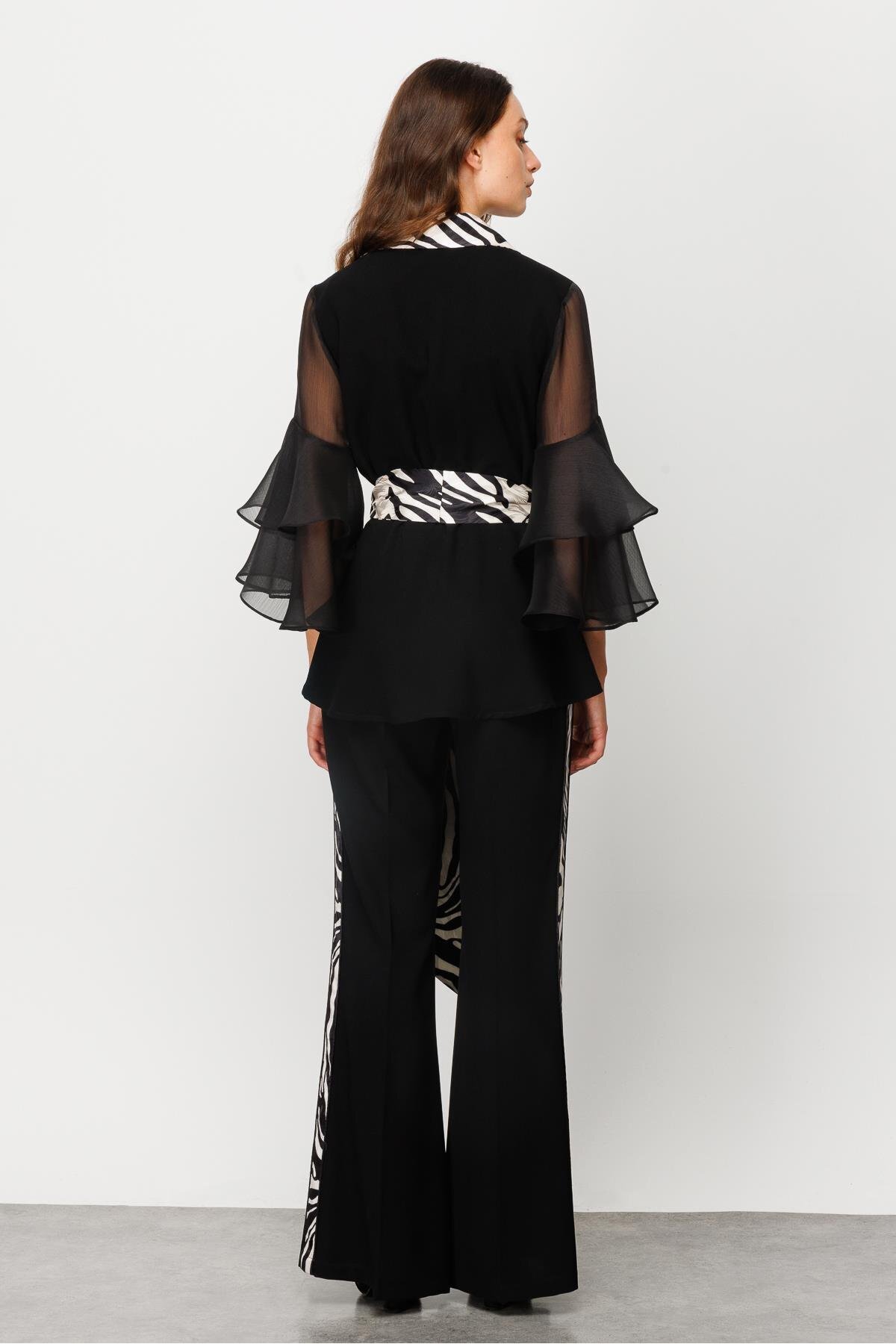 Modailgi Zebra Desenli Kolları Volanlı Gömlek Siyah Modailgi Zebra Desenli Kolları Volanlı Gömlek Siyah ILG240GMK01510 46