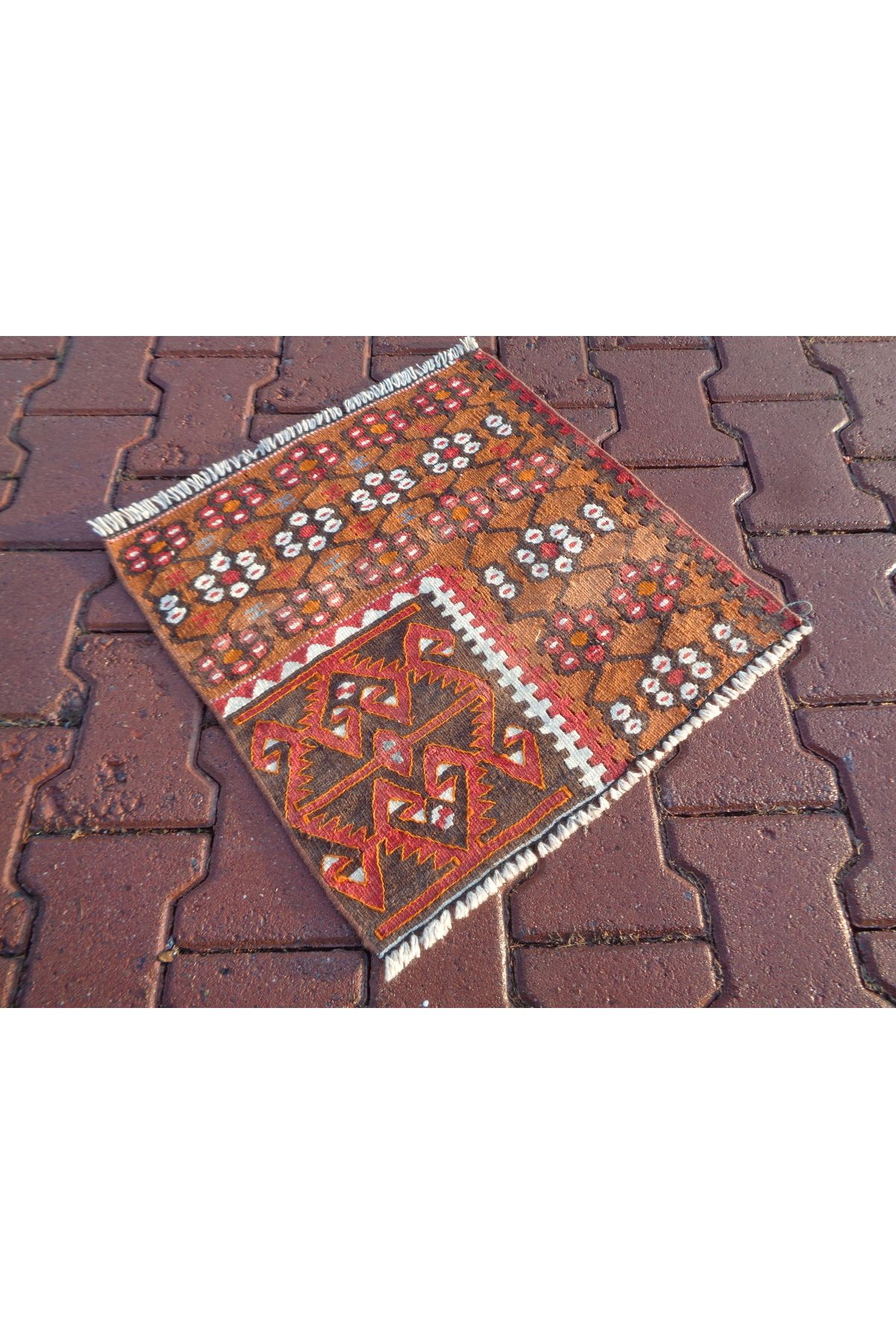 El Yapımı Harika Küçük Kilim, Anadolu Desenli Yün Kilim, Sandalye Minderi 70 x 31 Cm v206 El Yapımı Harika Küçük Kilim, Anadolu Desenli Yün Kilim, Sandalye Minderi 70 x 31 Cm v206 70 x 52