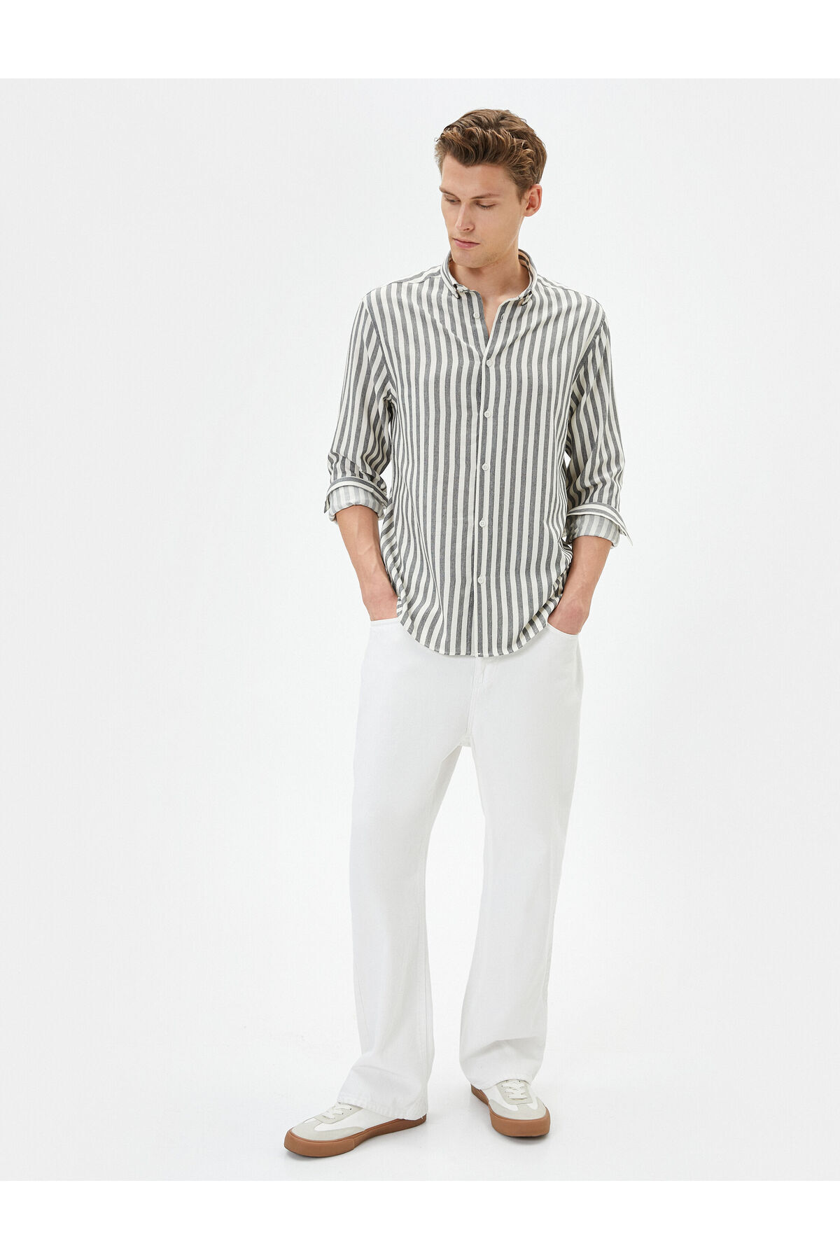 Klasik Gömlek Yarım Italyan Yaka Uzun Kollu Düğmeli Regular Fit Klasik Gömlek Yarım Italyan Yaka Uzun Kollu Düğmeli Regular Fit 4SAM60019HW 2XL