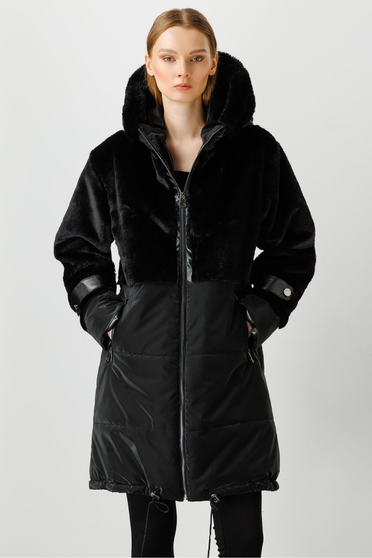 Modailgi Kapüşonlu Kürk Detaylı Kaban Siyah Modailgi Kapüşonlu Kürk Detaylı Kaban Siyah ILG240KBN02652 44