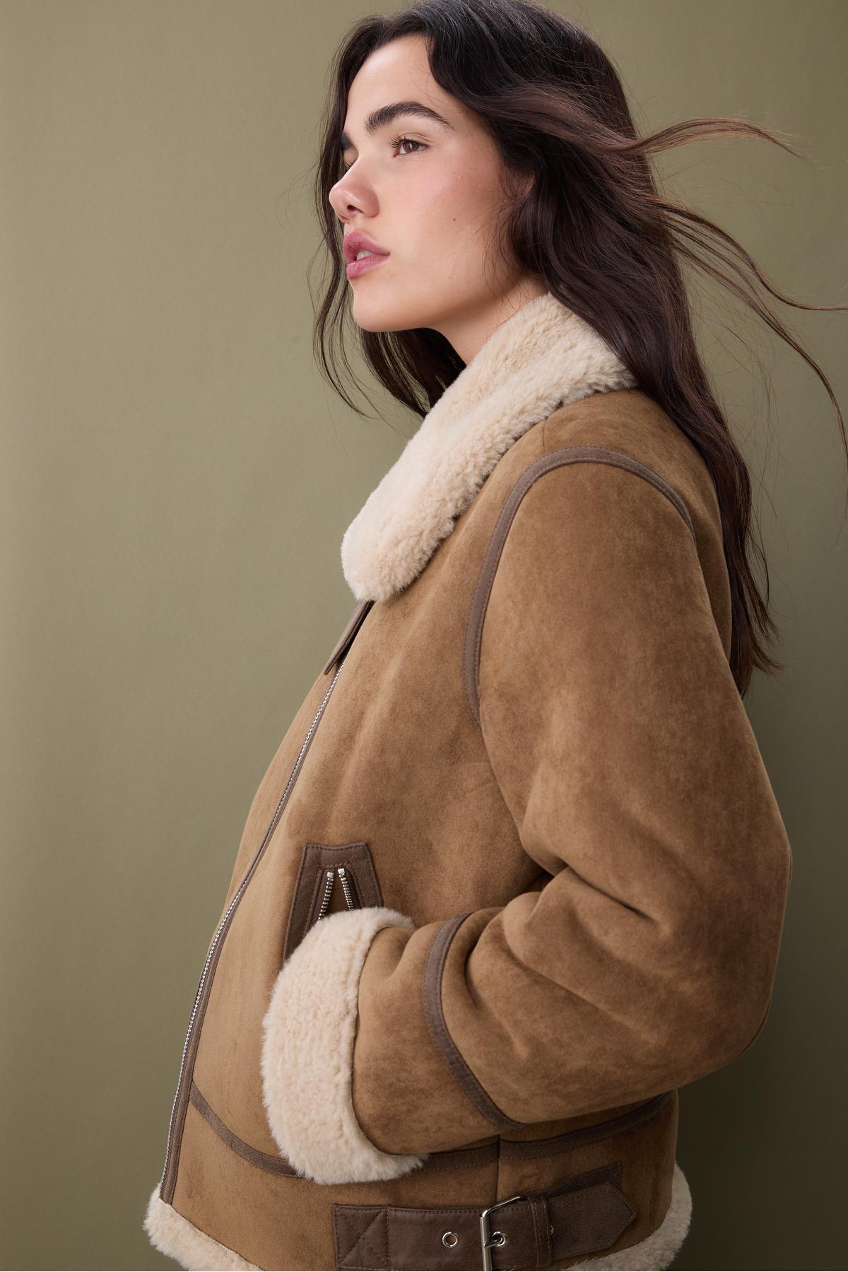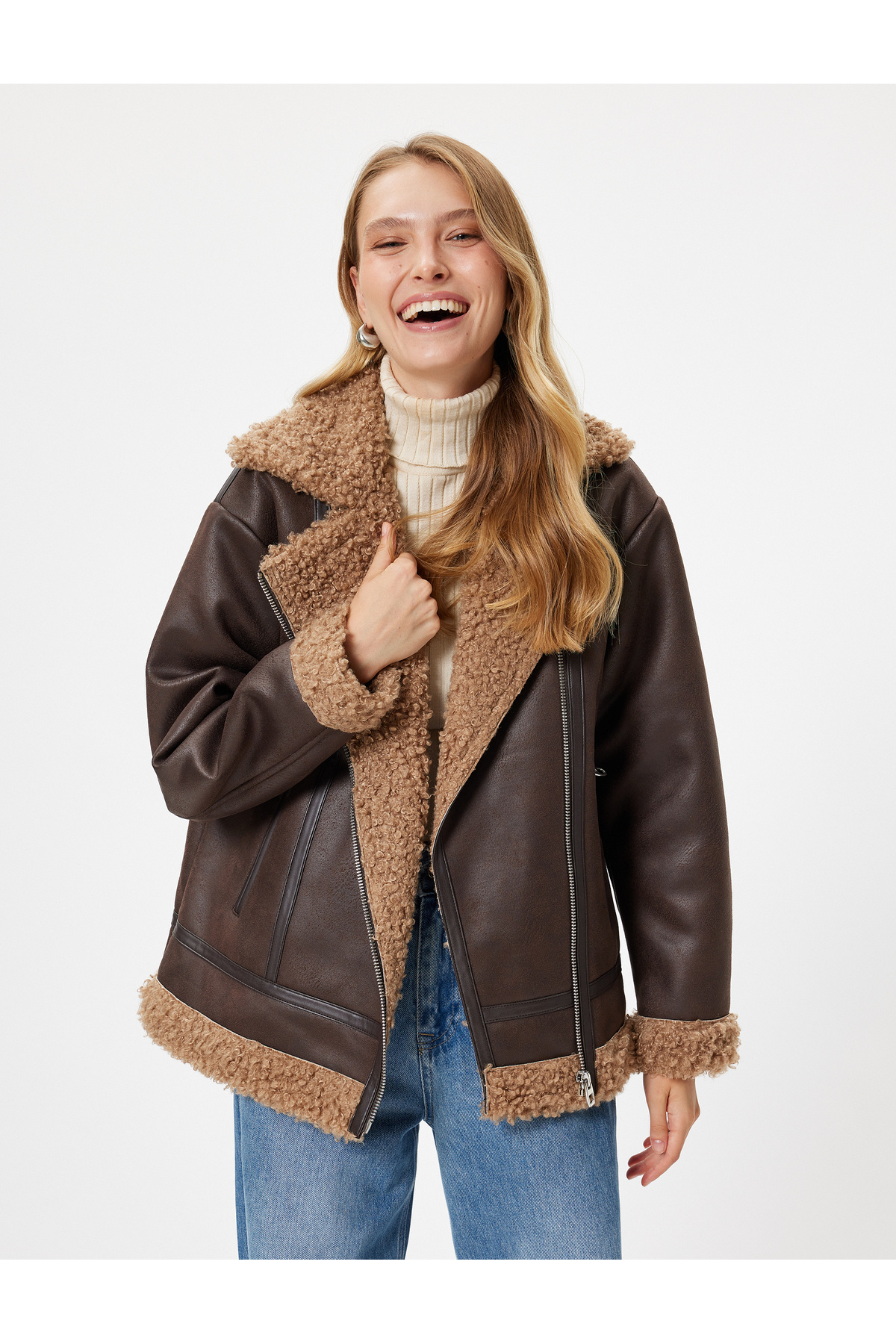 Suni Deri İçi Kürk Detaylı Uzun Biker Ceket Suni Deri İçi Kürk Detaylı Uzun Biker Ceket 23-8046 L