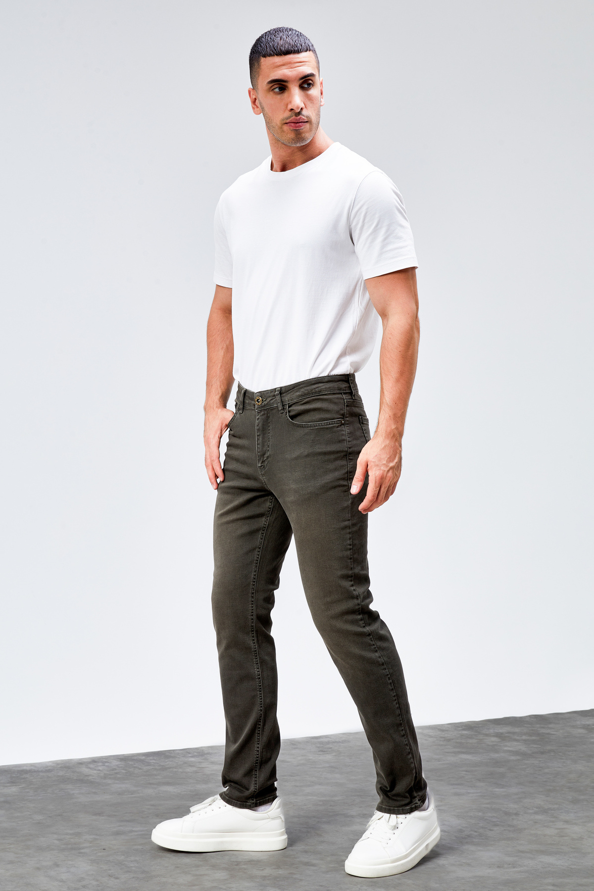 Erkek RAMOS Çam Yeşili Regular Fit Likralı Jean Kot Pantolon Erkek RAMOS Çam Yeşili Regular Fit Likralı Jean Kot Pantolon HALATS-DE-REGULAR 31/32
