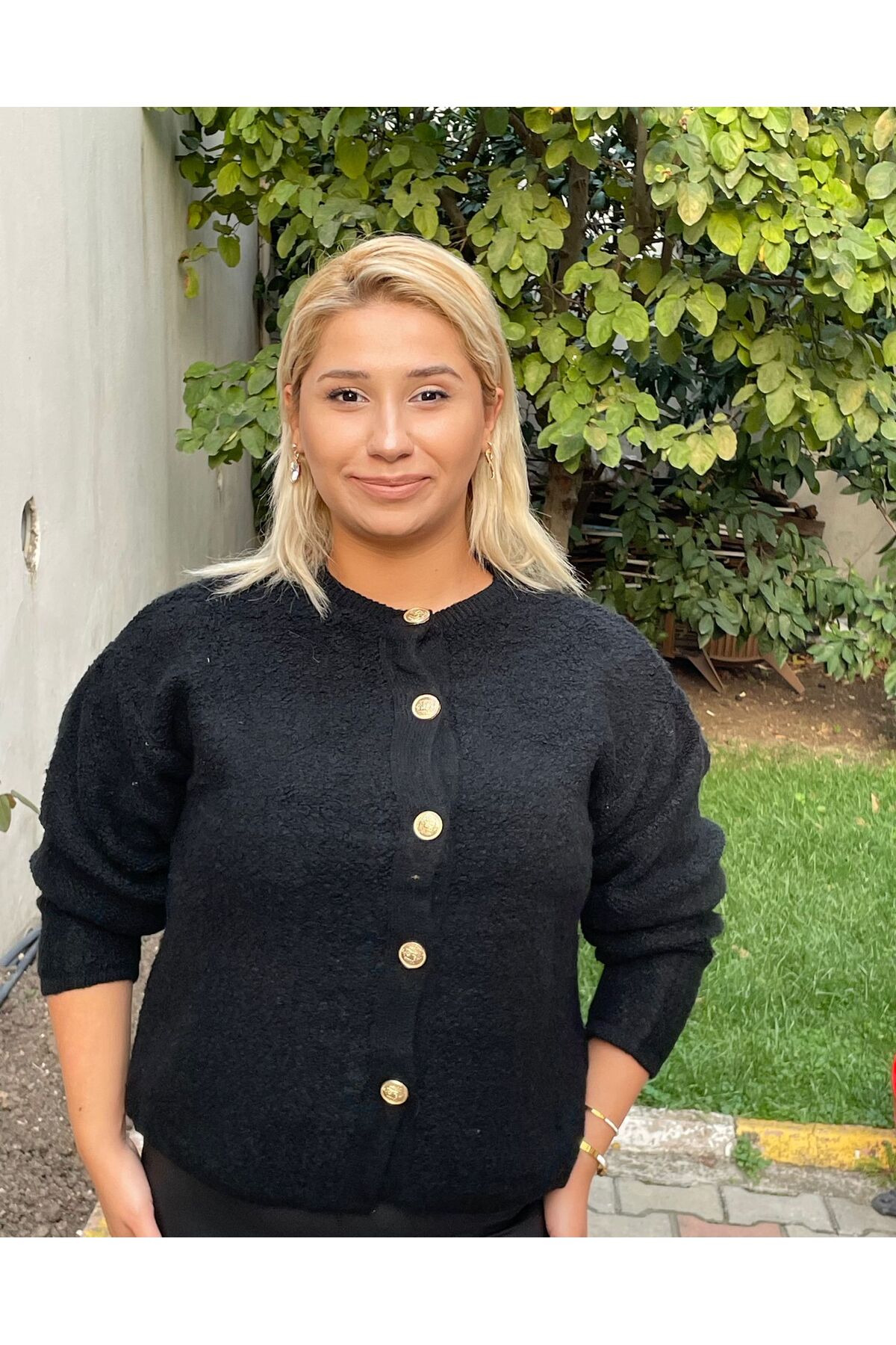 Metal Düğmeli Cep Detaylı Hırka -siyah Metal Düğmeli Cep Detaylı Hırka -siyah TY295-5488 Standart