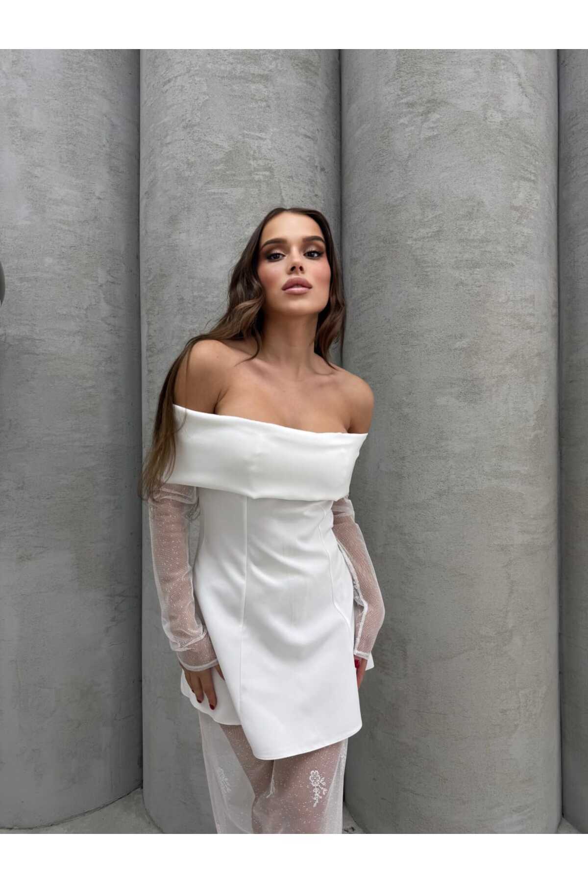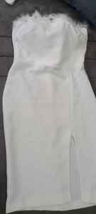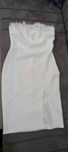 KANT Straplez Yakası Tüy Detaylı Yırtmaçlı Elbise KANT Straplez Yakası Tüy Detaylı Yırtmaçlı Elbise 7025 L