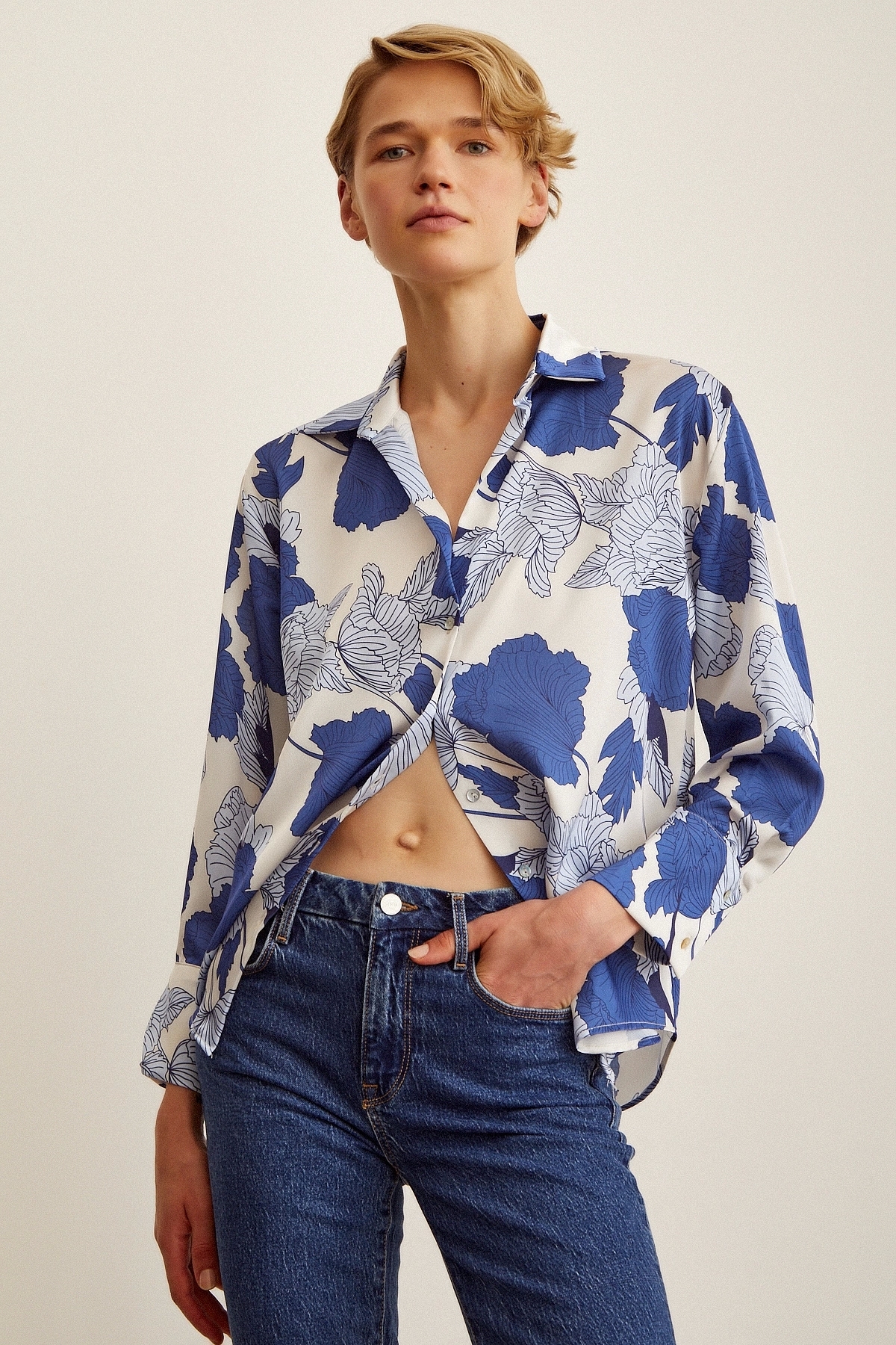 Zebra Desen V Yaka Saten Gömlek Zebra Desen V Yaka Saten Gömlek NM23W102101 L