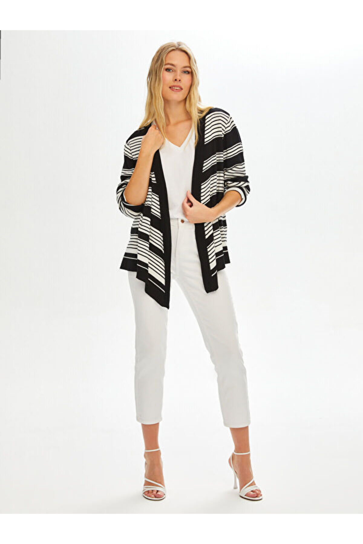 Şal Yaka Biyeli Atkı Detaylı Triko Hırka Şal Yaka Biyeli Atkı Detaylı Triko Hırka HK24060 Standart