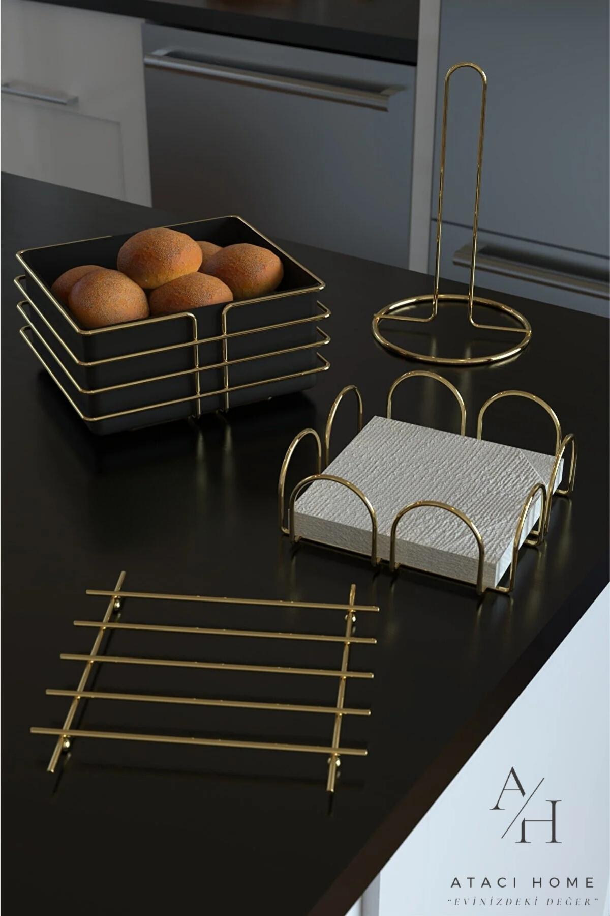 Servis Sunum Seti Ekmek Sepeti Havluluk Peçetelik Nihale Ekmeklik Altın Gold 4'lü Çeyiz Set Servis Sunum Seti Ekmek Sepeti Havluluk Peçetelik Nihale Ekmeklik Altın Gold 4'lü Çeyiz Set تک سایز
