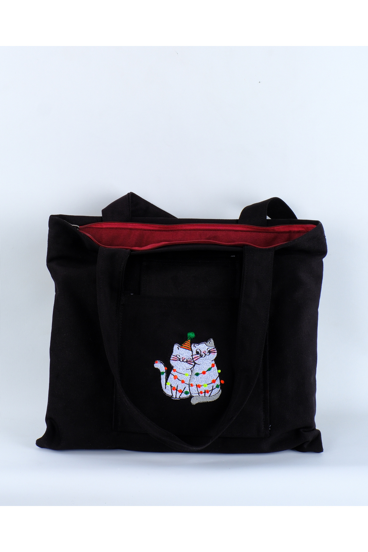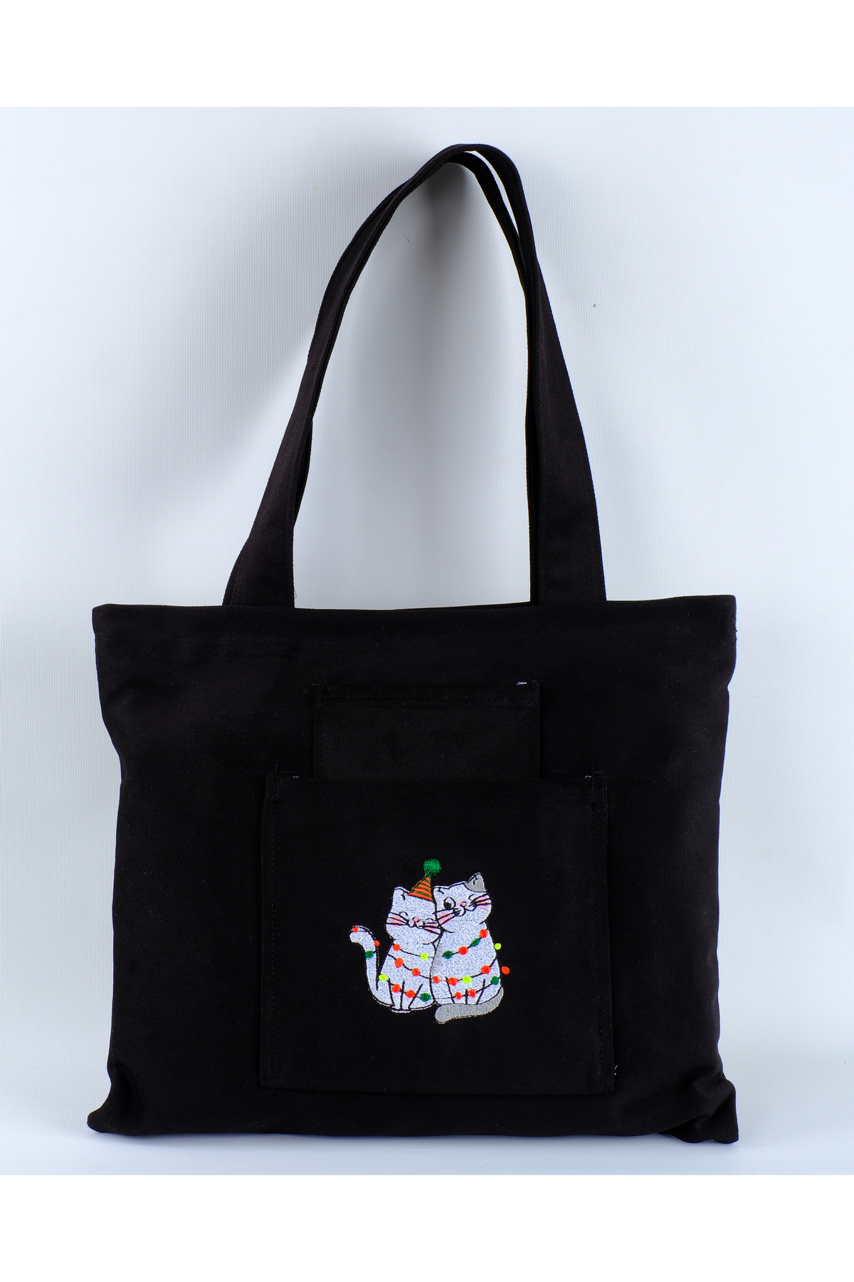 Butikmutik-kedi Nakış Işlemeli Fermuarlı Siyah Kanvas Bez Çanta ve Cüzdan Takım Butikmutik-kedi Nakış Işlemeli Fermuarlı Siyah Kanvas Bez Çanta ve Cüzdan Takım Sevimli kediler L