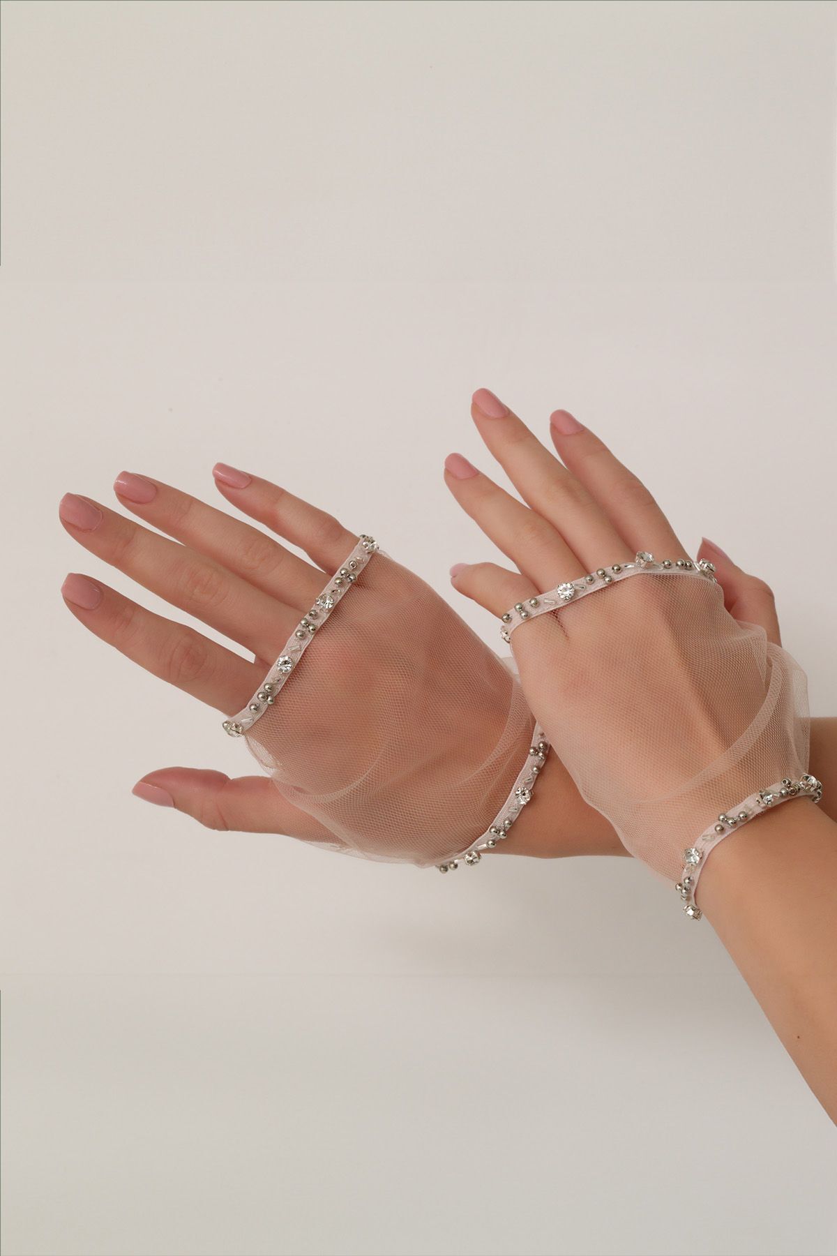 Parlak Taşlı Lacivert Uzun Tül Eldiven Parlak Taşlı Lacivert Uzun Tül Eldiven GBPTUTEL 1