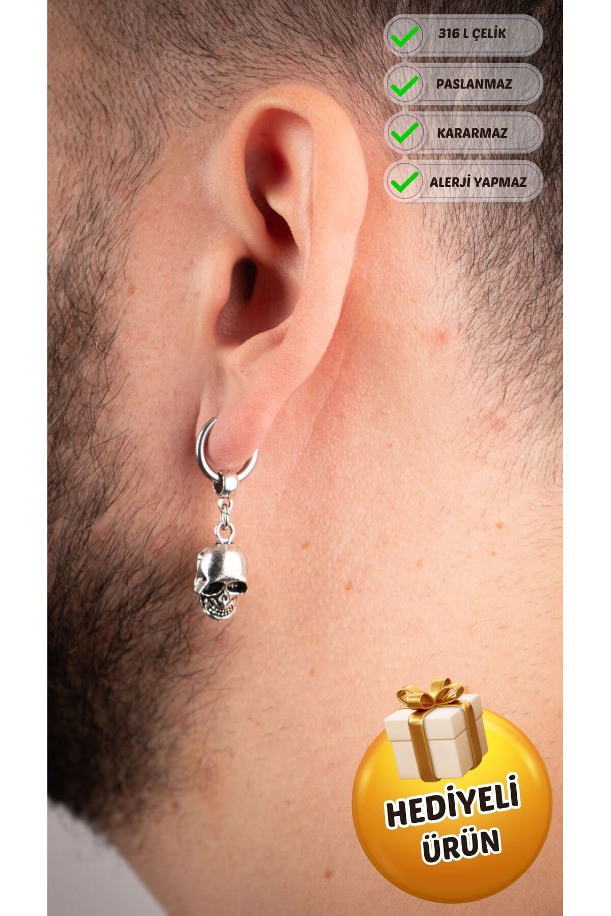 Erkek Çelik Halka Sallantılı İskelet Küpe Paslanma Kararma Yapmaz Erkek Çelik Halka Sallantılı İskelet Küpe Paslanma Kararma Yapmaz PM493353 تک سایز