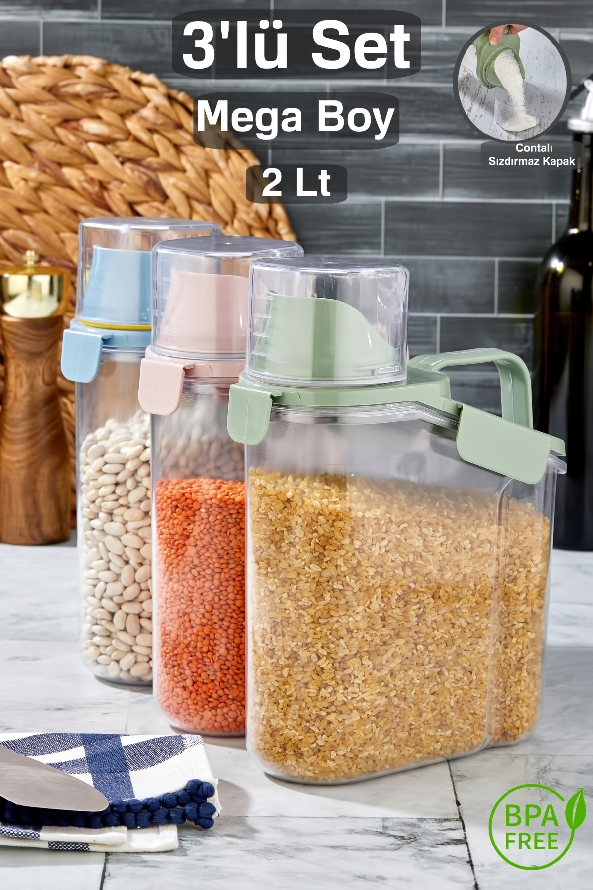 2'li Unique 2 Lt Contalı Erzak Saklama Kabı - Ölçekli Bakliyat Kabı Düzenleyici Kavanoz 2'li Unique 2 Lt Contalı Erzak Saklama Kabı - Ölçekli Bakliyat Kabı Düzenleyici Kavanoz TGM-0164 تک سایز