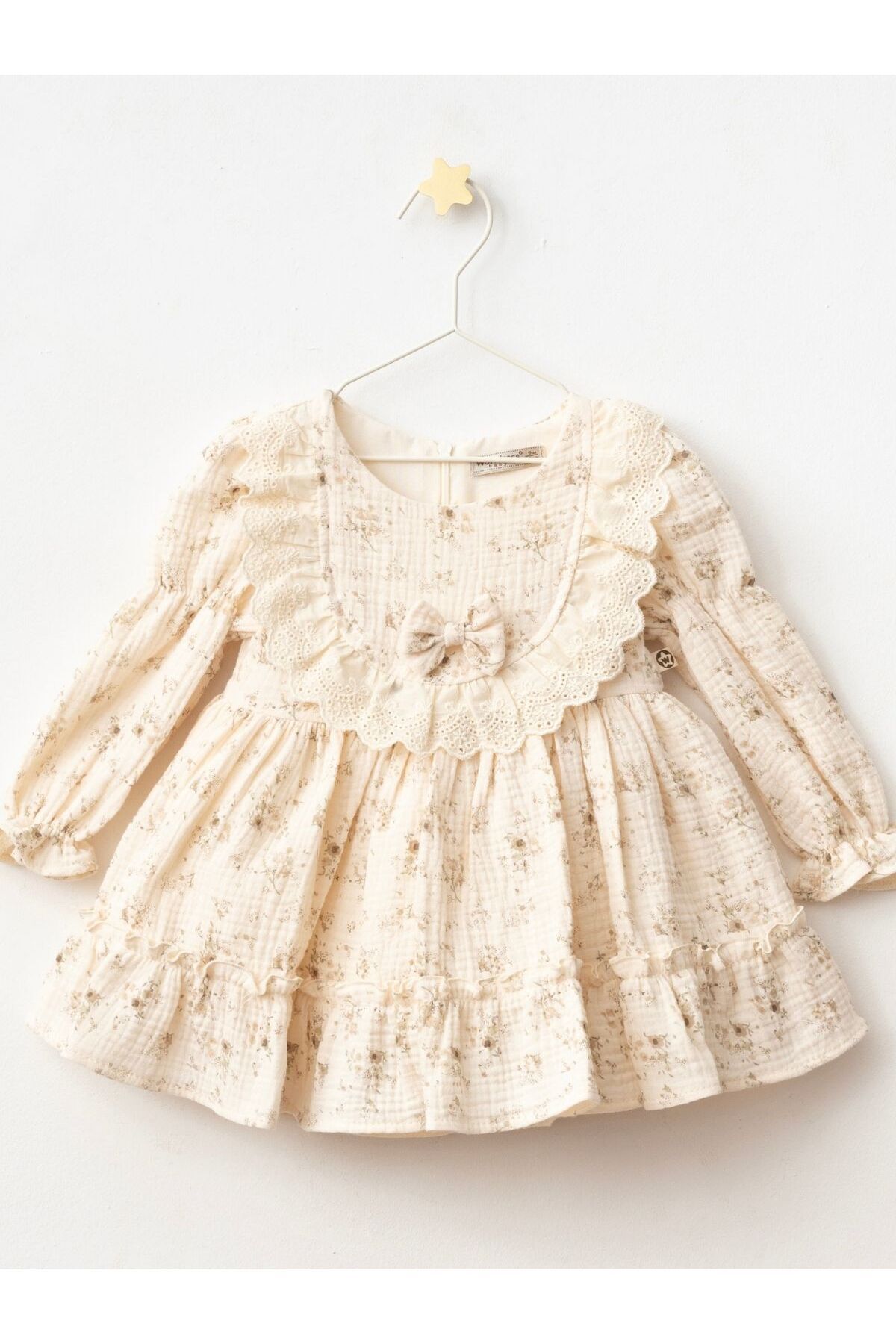 Dantel Yaka ve Tül Etek Detaylı Nostaljik Kız Bebek Elbisesi Dantel Yaka ve Tül Etek Detaylı Nostaljik Kız Bebek Elbisesi 3883MN 2-4 Yaş