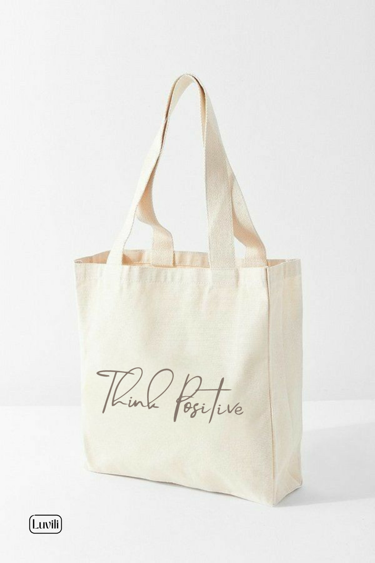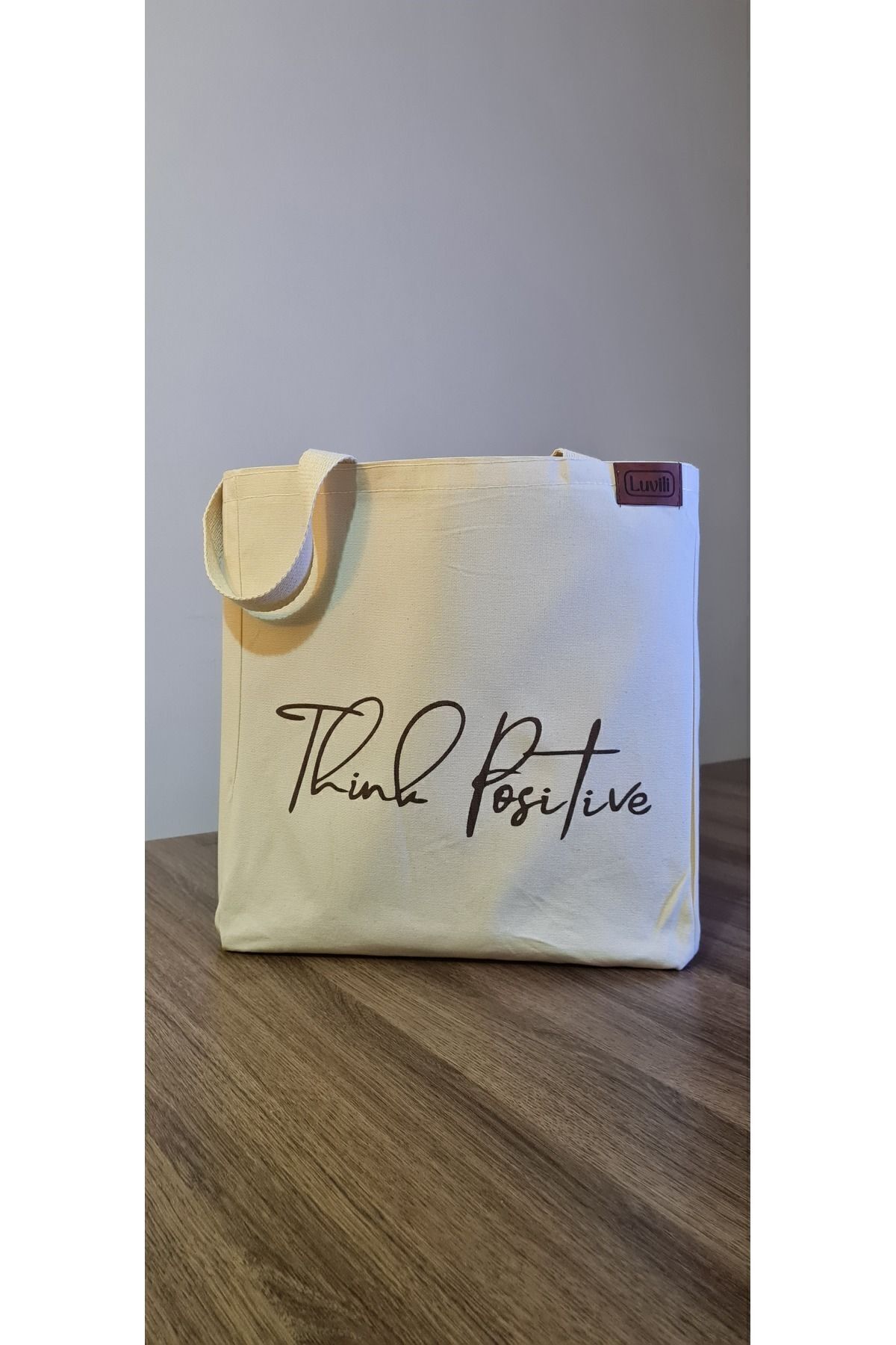 Çanta, Baskılı Körüklü Kanvas Bez Çanta, Think Positive Çanta, Baskılı Körüklü Kanvas Bez Çanta, Think Positive L828631 تک سایز