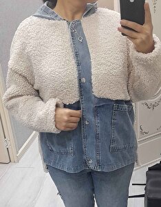 Kadın Bej Çıtçıt Düğme Kot Garnili Kapüşonlu Peluş Ceket Kadın Bej Çıtçıt Düğme Kot Garnili Kapüşonlu Peluş Ceket 14163 L
