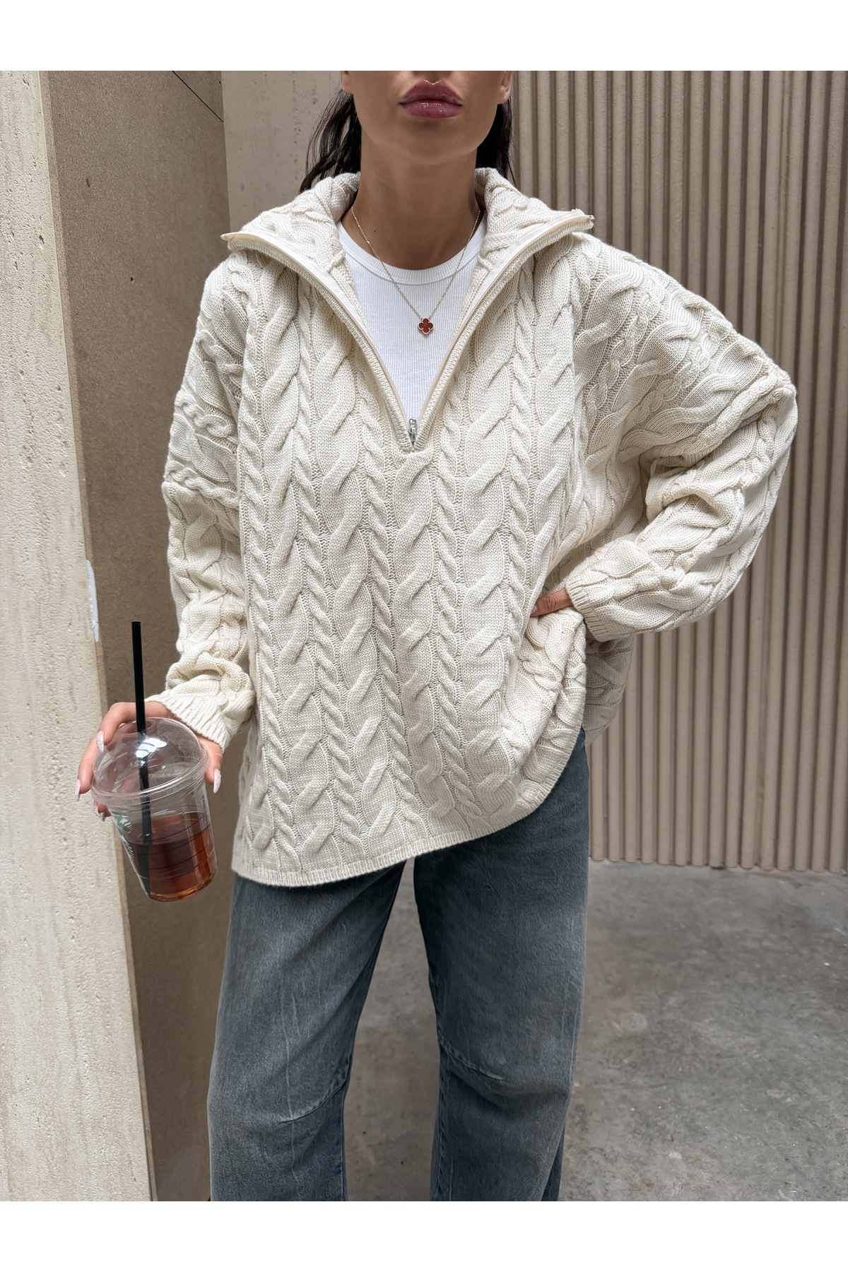 Kadın Kahverengi Balıkçı Yaka Fermuarlı Örgülü Oversize Triko Kazak Kadın Kahverengi Balıkçı Yaka Fermuarlı Örgülü Oversize Triko Kazak Tk231078 Standart