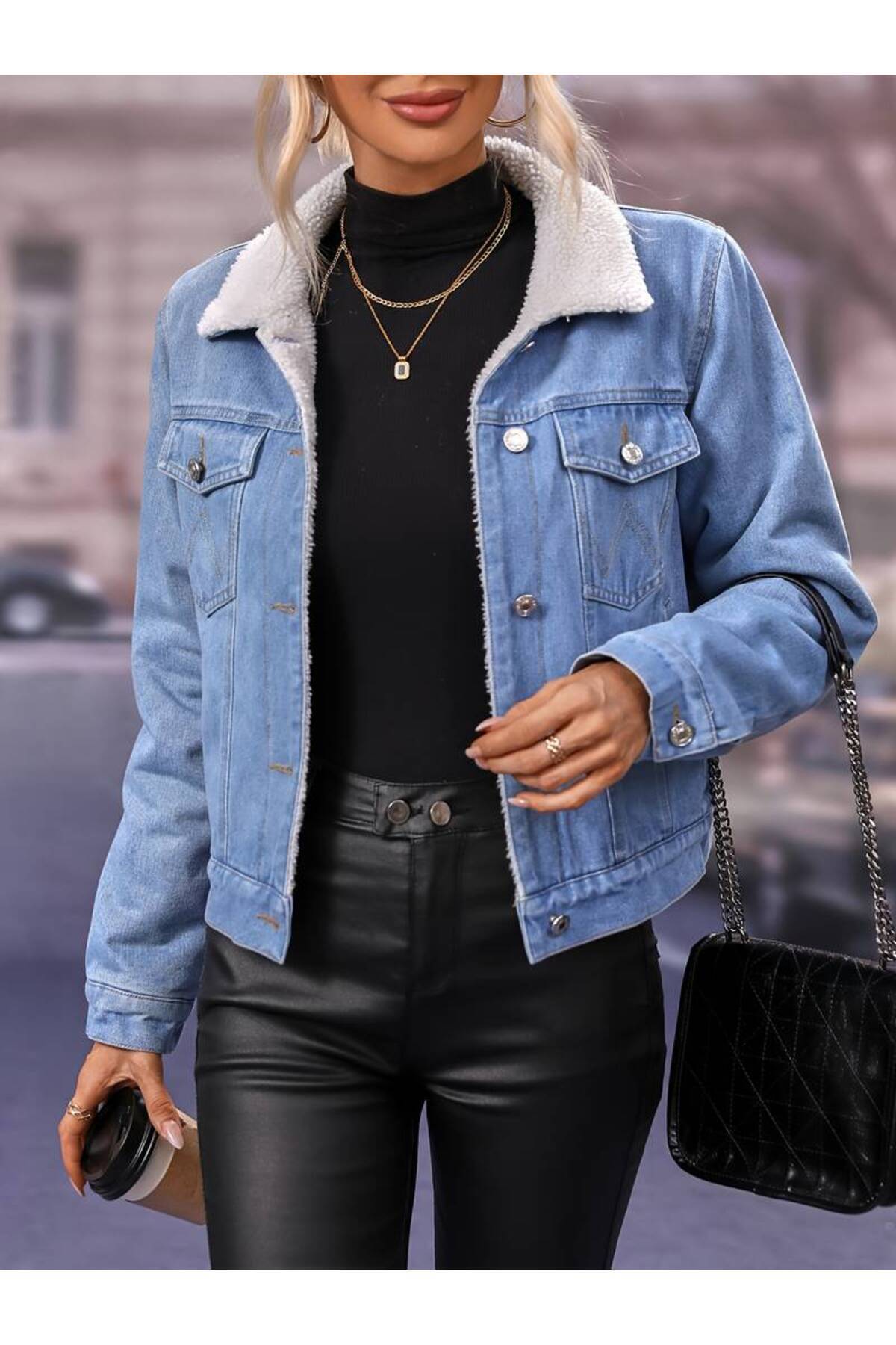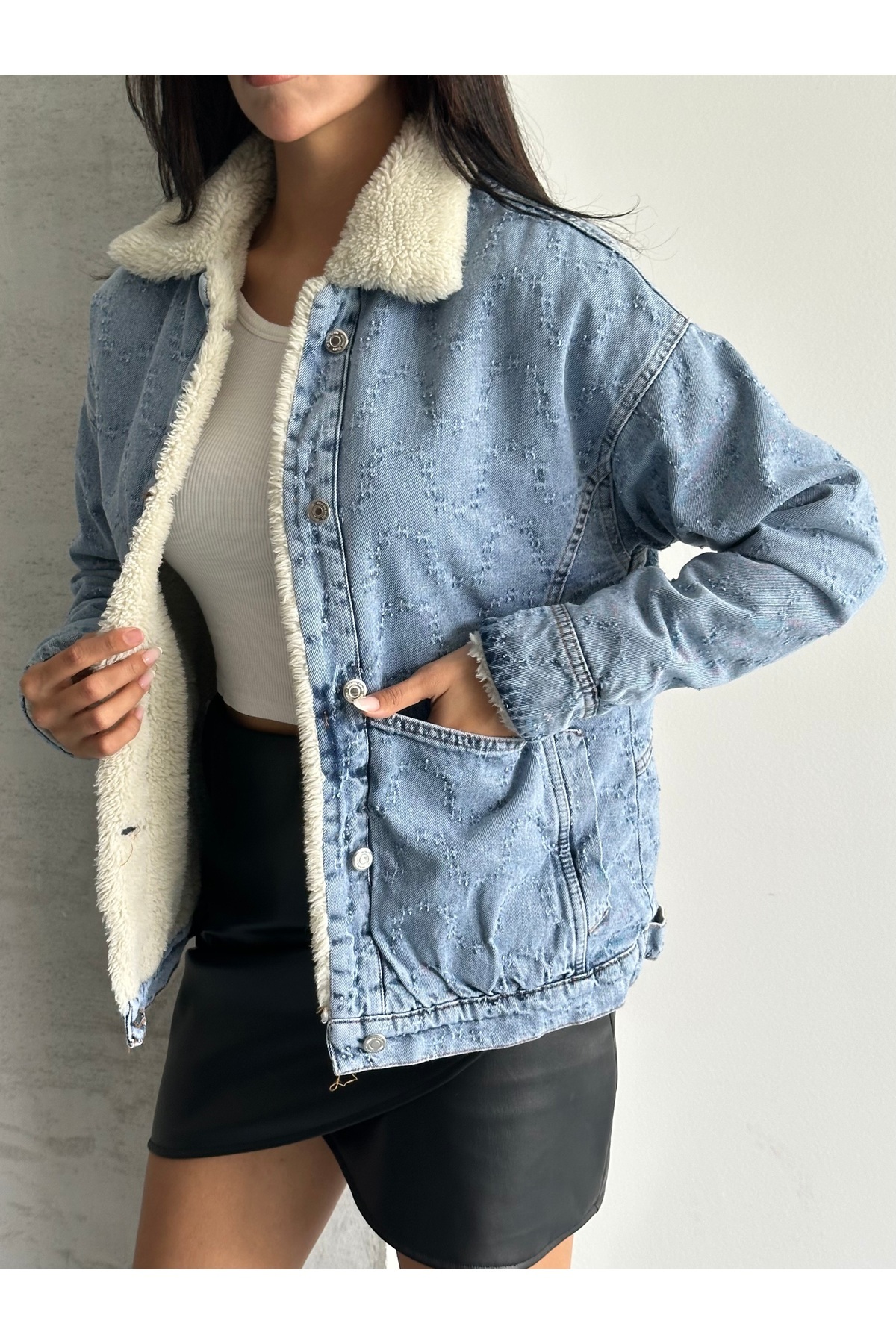 Kadın İçi Kürklü Slim Fit Kot Ceket Buz Mavisi Kadın İçi Kürklü Slim Fit Kot Ceket Buz Mavisi kkurklu1001 2XL