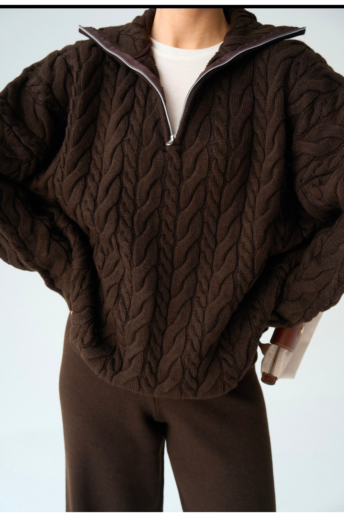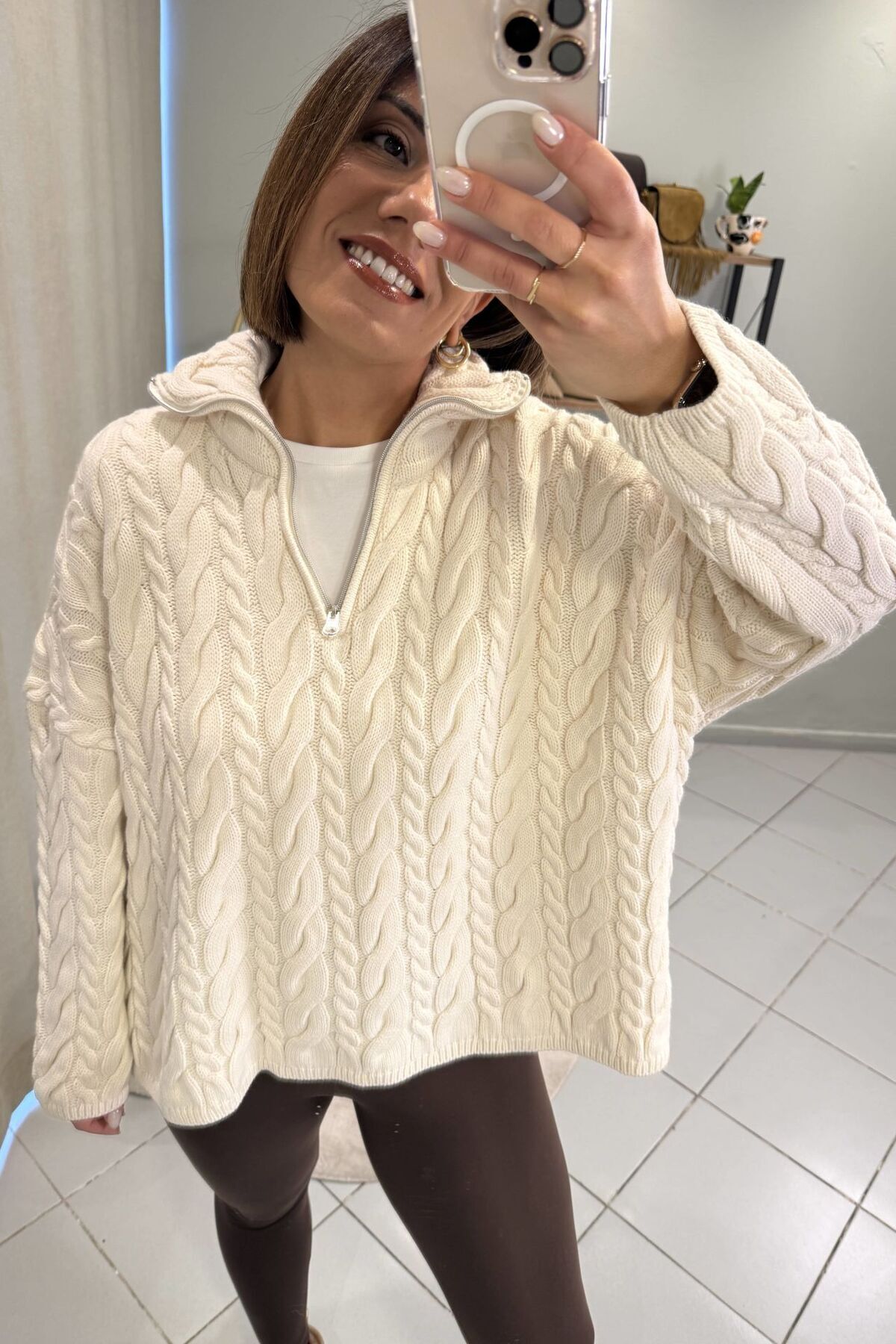 Fermuarlı Saç Örgülü Kazak Fermuarlı Saç Örgülü Kazak F154 Standart