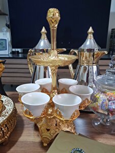 İki Katlı Tablalı Lüks Çok Amaçlı Zemzem ve Kahve Sunumluk Gold İki Katlı Tablalı Lüks Çok Amaçlı Zemzem ve Kahve Sunumluk Gold UCR-008 تک سایز
