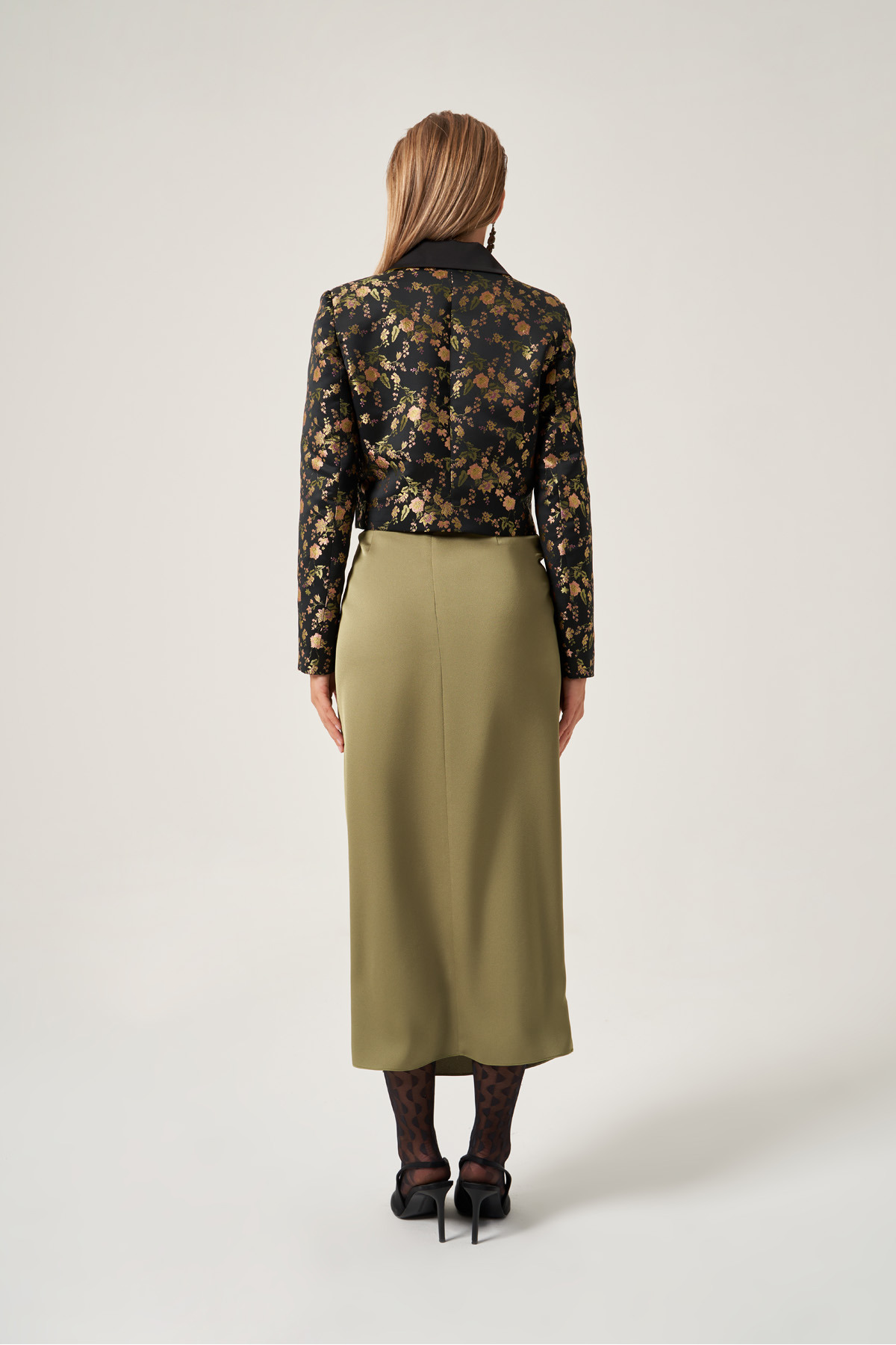 Yeşil Saten Büzgülü Yırtmaçlı Etek 4806 Yeşil Saten Büzgülü Yırtmaçlı Etek 4806 11-00063 42