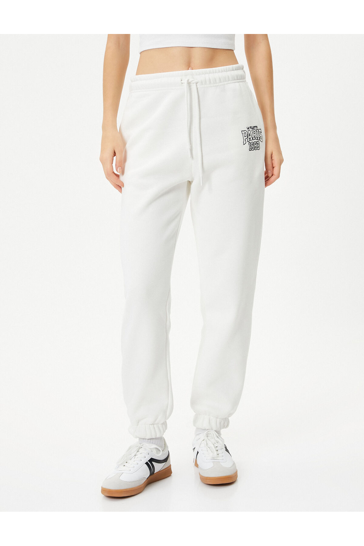 Şardonlu Jogger Eşofman Altı Beli Bağlamalı Cepli Baskı Detaylı Şardonlu Jogger Eşofman Altı Beli Bağlamalı Cepli Baskı Detaylı 4SAL40083IK XL
