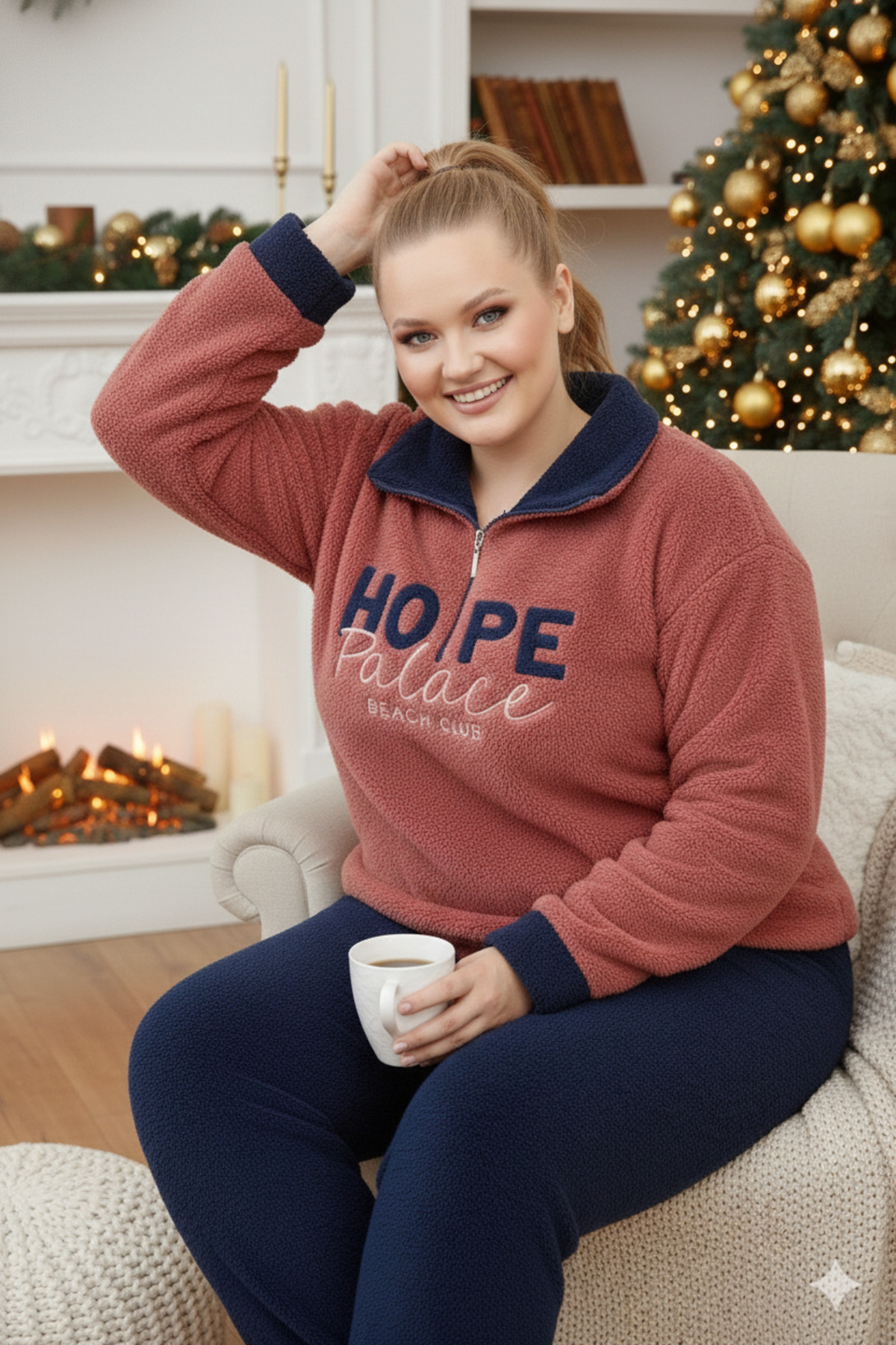 Fermuarlı Peluş Welsoft Pijama Takımı Fermuarlı Peluş Welsoft Pijama Takımı 31077 3XL