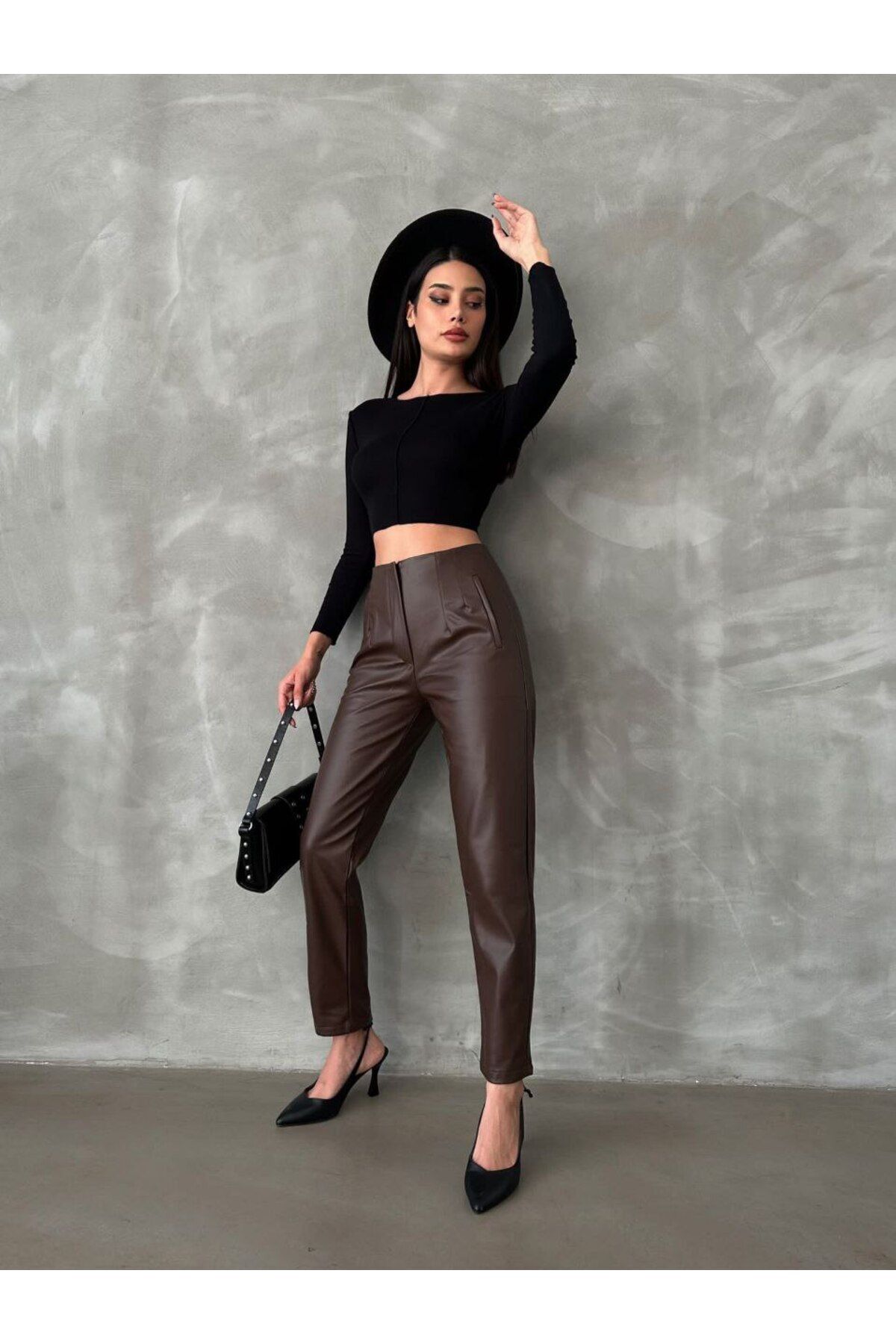 Deri Kadın Model Önü Çimalı içi Şardonlu Kışlık Çepli Deri Pantolon Deri Kadın Model Önü Çimalı içi Şardonlu Kışlık Çepli Deri Pantolon SWANA568 M