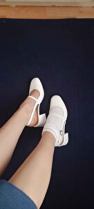 "FABRİ" Beyaz Cilt - 5cm Kalın Topuk Geniş Burunlu Topuklu Ayakkabı "FABRİ" Beyaz Cilt - 5cm Kalın Topuk Geniş Burunlu Topuklu Ayakkabı 42