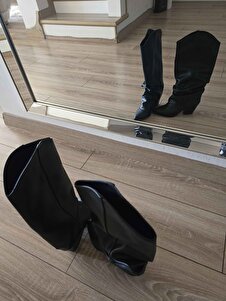 Dima Siyah Cilt Körüklü Kadın Topuklu Çizme Dima Siyah Cilt Körüklü Kadın Topuklu Çizme DCLFRT100 40